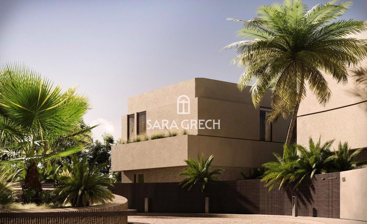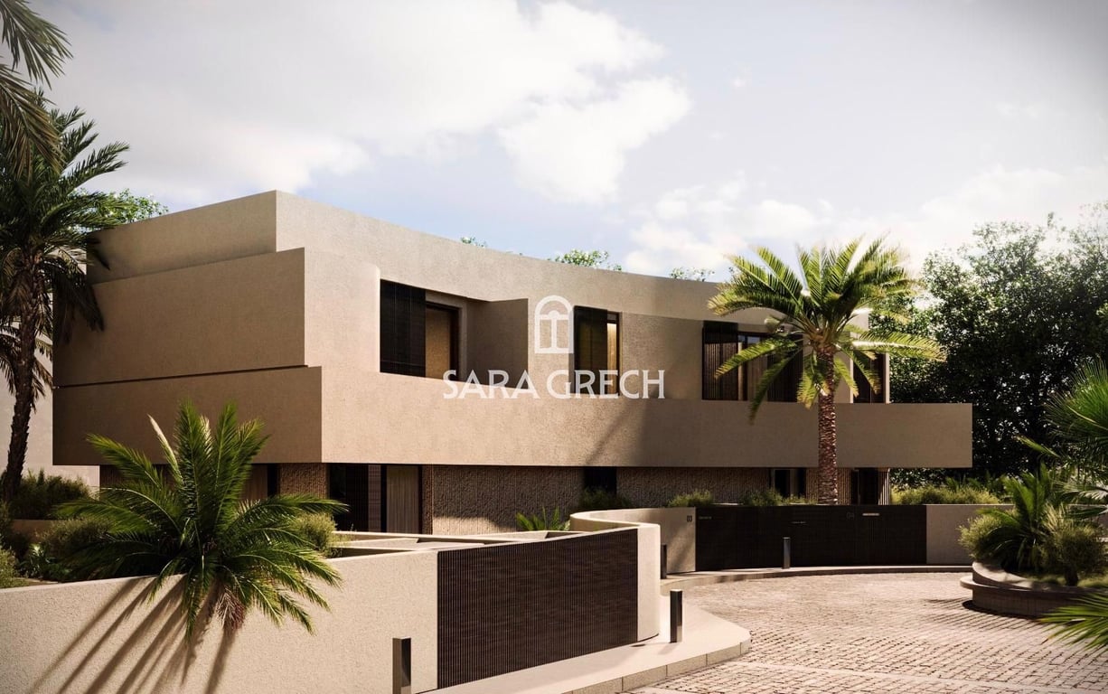 The ground floor of the semi-detached villa boasts an open-plan kitchen, living, and dining area, seamlessly connected to an outdoor space that includes a pool, perfect for relaxation and entertaining. A guest bathroom is conveniently located for visitors. Level 1 features a luxurious master bedroom with an ensuite, walk-in wardrobe, and terrace, accompanied by two secondary bedrooms, each with its own ensuite. Descending to Level -1, you'll find a 3/4 car garage with guest parking, a studio apa...