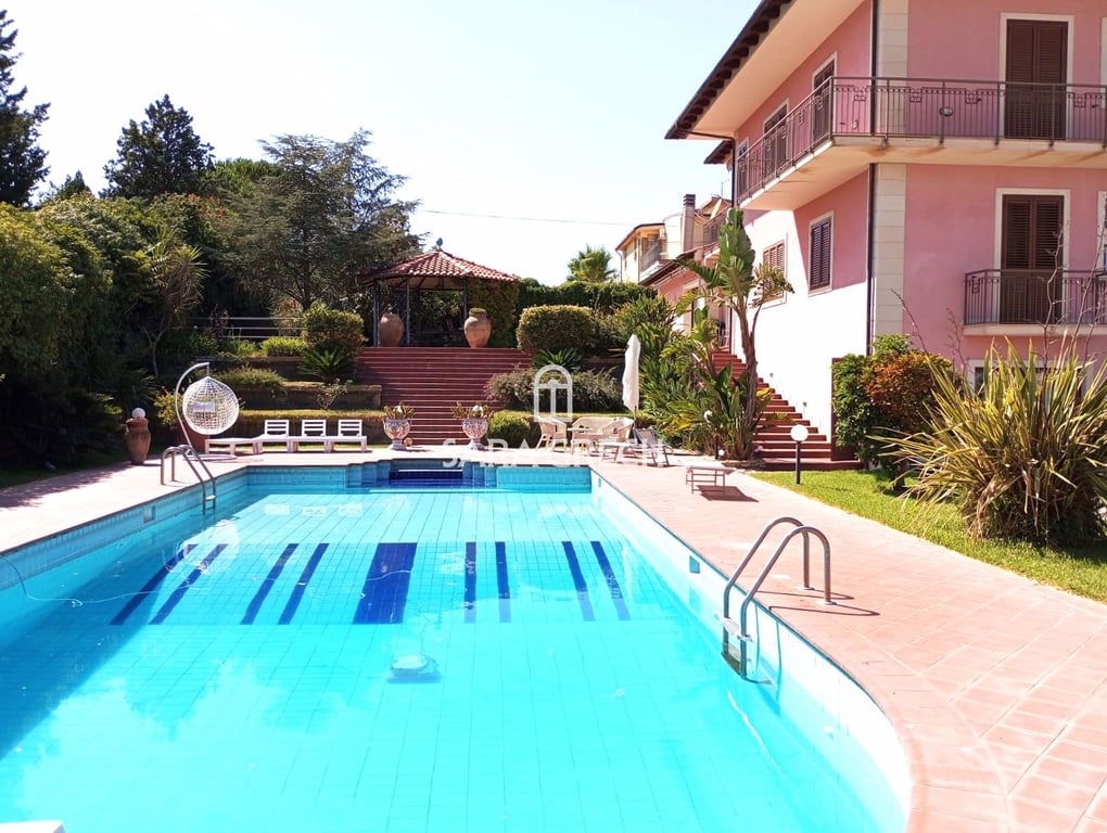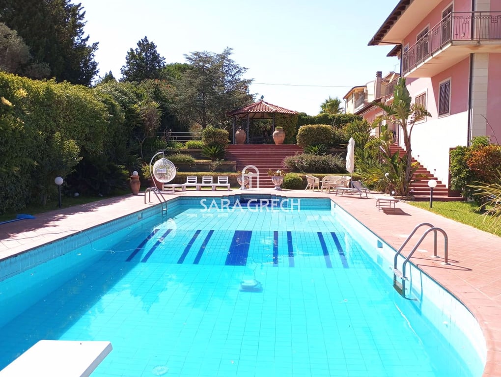1,400 Sqm Villa with Swimming Pool and landsacped Gardens, comprising two independent Apartments and an annex with Open Views pf the country side. Two apartments of equal size, 159 sq m, are located on the ground floor and first floor. They comprise a very large living room with fireplace, bathroom, and kitchen. The first floor comprises three bedrooms, a walk-in closet, three bathrooms, one with a shower, and one with a bathtub, as well as a laundry room. Below the villa is a 120 Sqm annex wi...