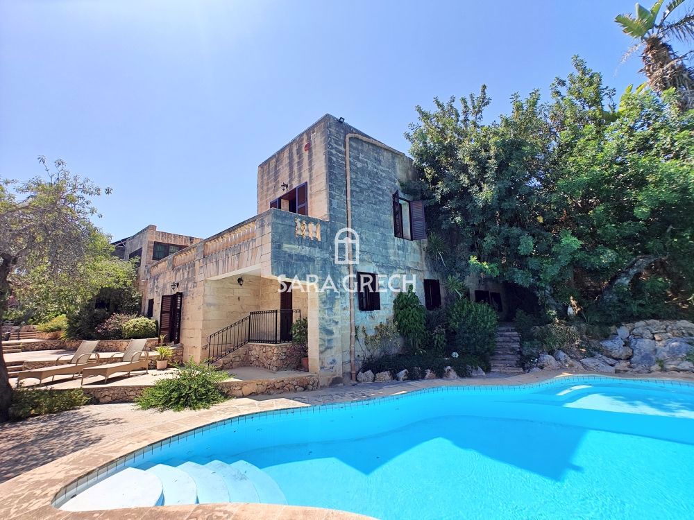 Introducing a stunning property for sale: a 5 bedroom, 6 bathroom House of Character located in the charming town of Mosta. This beautifully furnished home boasts a spacious 2,800 square meter plot area, providing ample space for both indoor and outdoor living. The outdoor area features a sparkling pool, landscaped garden, and a picturesque conservatory, creating a perfect oasis for relaxation and entertainment. This home is ideal for those seeking peace and tranquility, as it offers breathtaki...