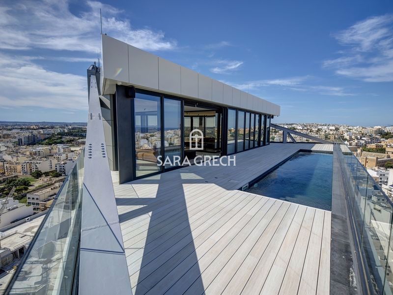 This beautifully designed penthouse in the sought-after area of Gzira boasts an impressive total area of 750 SQM, with swimming pool making it the perfect property for those looking for a spacious and luxurious living space. It offers 360-degree views of the surrounding area and includes a spacious open-plan, large terraces, and a 12-meter lap pool. With 3 bedrooms and 4 bathrooms, this fully furnished and finished penthouse offers maximum comfort and convenience. The modern and stylish interi...