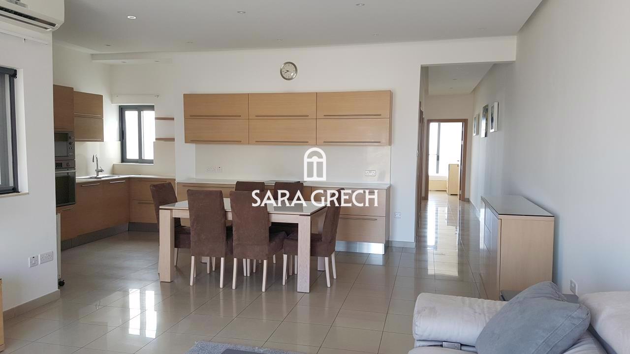 Spacious furnished Penthouse in Bahar Ic-Caghaq. Accommodation is in the form of an extremely large combined sitting/living, kitchen/dining overlooking front Terrace, Bathroom, 2 Bedrooms, master with En suite and a back Terrace. and a 1 car garage