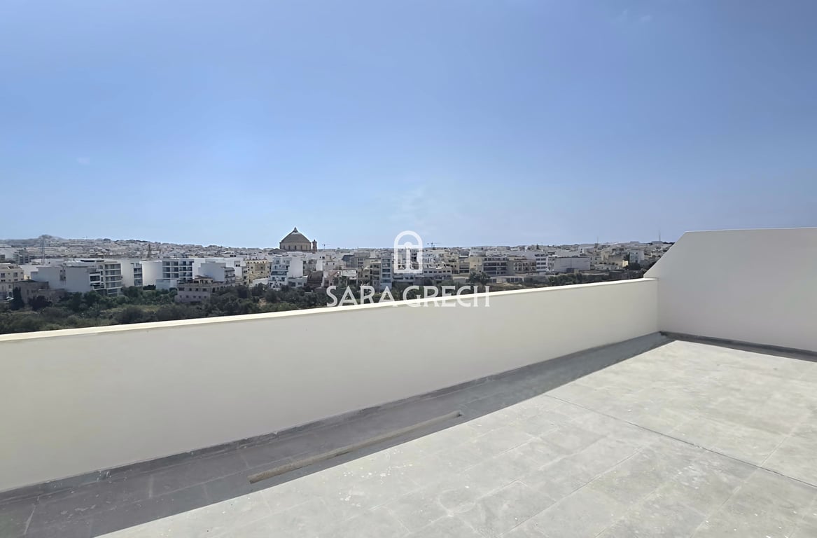 A well located penthouse in Mosta, being sold inclusive of airspace and having a lovely open view. It is also being sold as finished excluding bathrooms and internal doors and on plan with completion set for end 2024. Accommodation comprises of : Front Large Terrace Open plan Kitchen / Living / Dining Bathroom Two Bedrooms En-suite Optional Garages included For further details, kindly contact the assigned Certified Sales Agent.