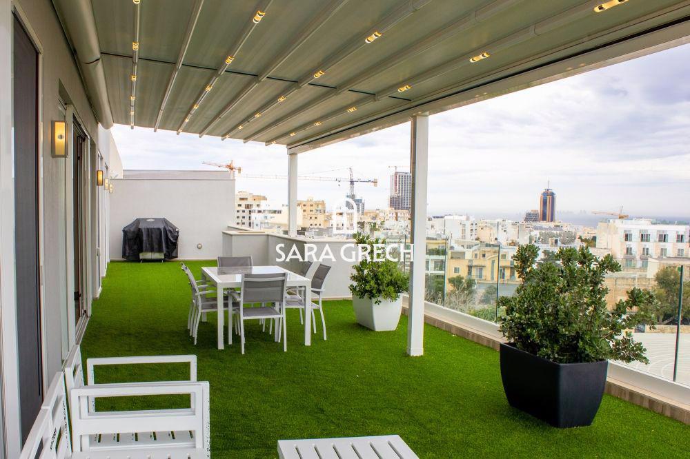 Highly finished Penthouse for sale located in St.Julians. This beautiful penthouse enjoys open views and a total area of 327 sqm. The property comprises of: Open plan (kitchen, living area, dining area) 3 Bedrooms 2 Bathrooms Laundry room Terrace measuring 180sqm Swimming Pool Served with lift Includes 5 car spaces For more information about this property call one of the numbers provided or visit one of our lounges located around Malta.