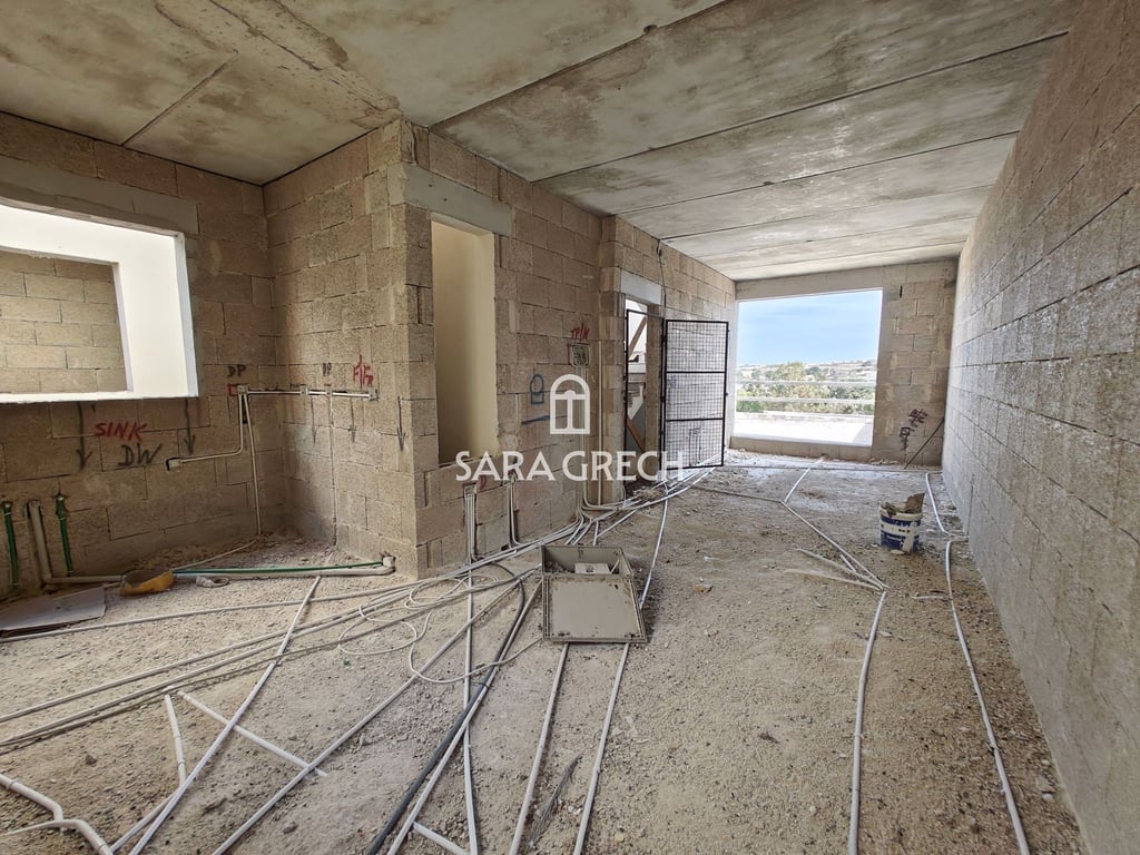 A Three Bedroom Penthouse for sale in Burmarrad situated close to all amenities. Forming part of a new development and being sold finished excluding bathrooms & internal doors. Main features comprising of: Open plan kitchen/ living/ dining 36 sqm Front terrace 3 Double bedrooms Main bathroom & en-suite Laundry room Back terrace Lift access Optional garages also available. For viewing this PENTHOUSE kindly call one of our agents