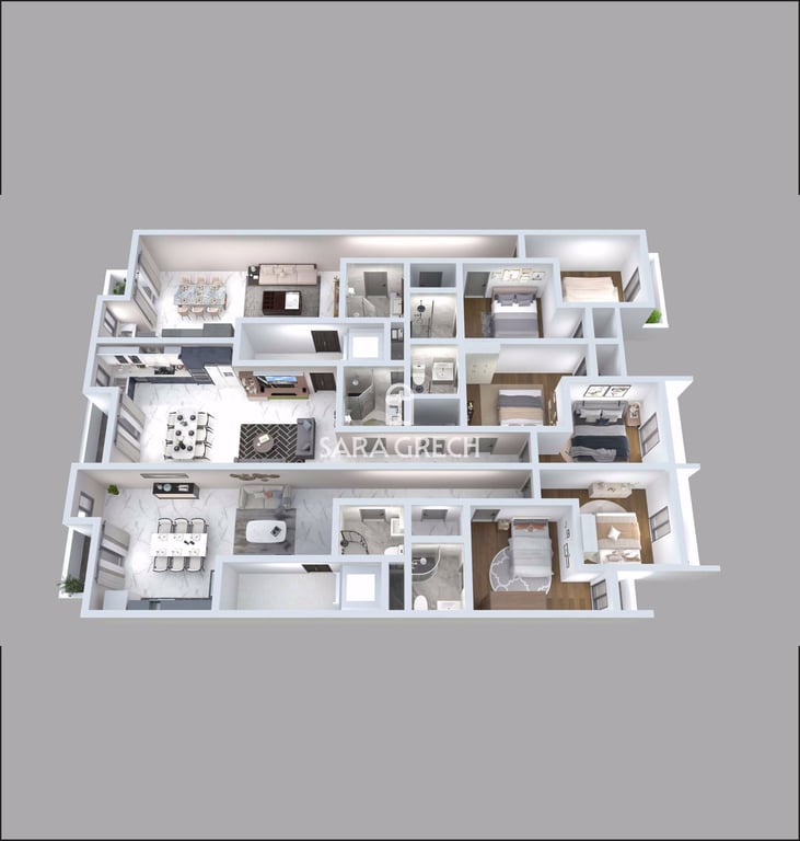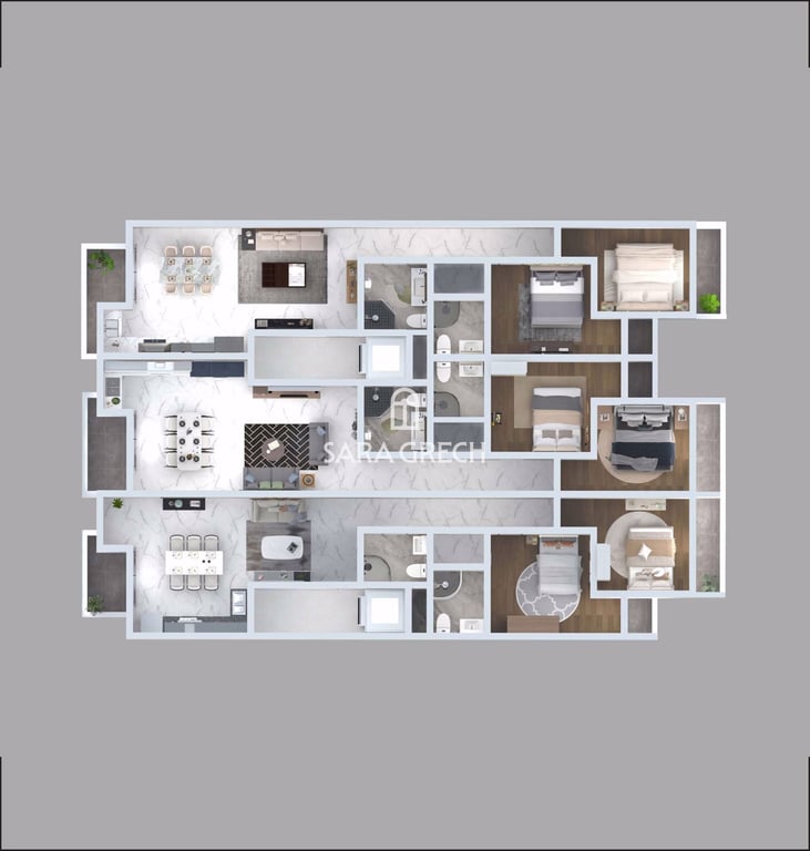 Spacious penthouse for sale in Qawra. This freehold property is being sold finished excluding internal doors an bathrooms. Features of this property includes an open plan/kitchen/dining/living, two double bedrooms, study which can be used as a third bedroom, main bathroom, en-suite, back balcony, front terrace and airspace. Interconnecting garages are available optional. For more information kindly contact the assigned Licensed Agent.
