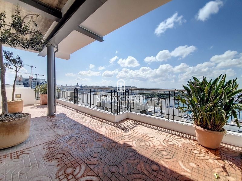 An excellent investment opportunity in the form of a corner duplex Penthouse in one of Sliema's best areas which can be converted and sold as 2 separate units both enjoying spacious terraces and stunning views reaching as far as Mdina and Rabat. The first level of the property is highly finished and furnished in the form of a spacious open plan Kitchen & Dining area, large Living Room with a front Terrace, 2 double Bedrooms (main En-Suite), Guest Bathroom. The Terrace surrounds the whole pentho...