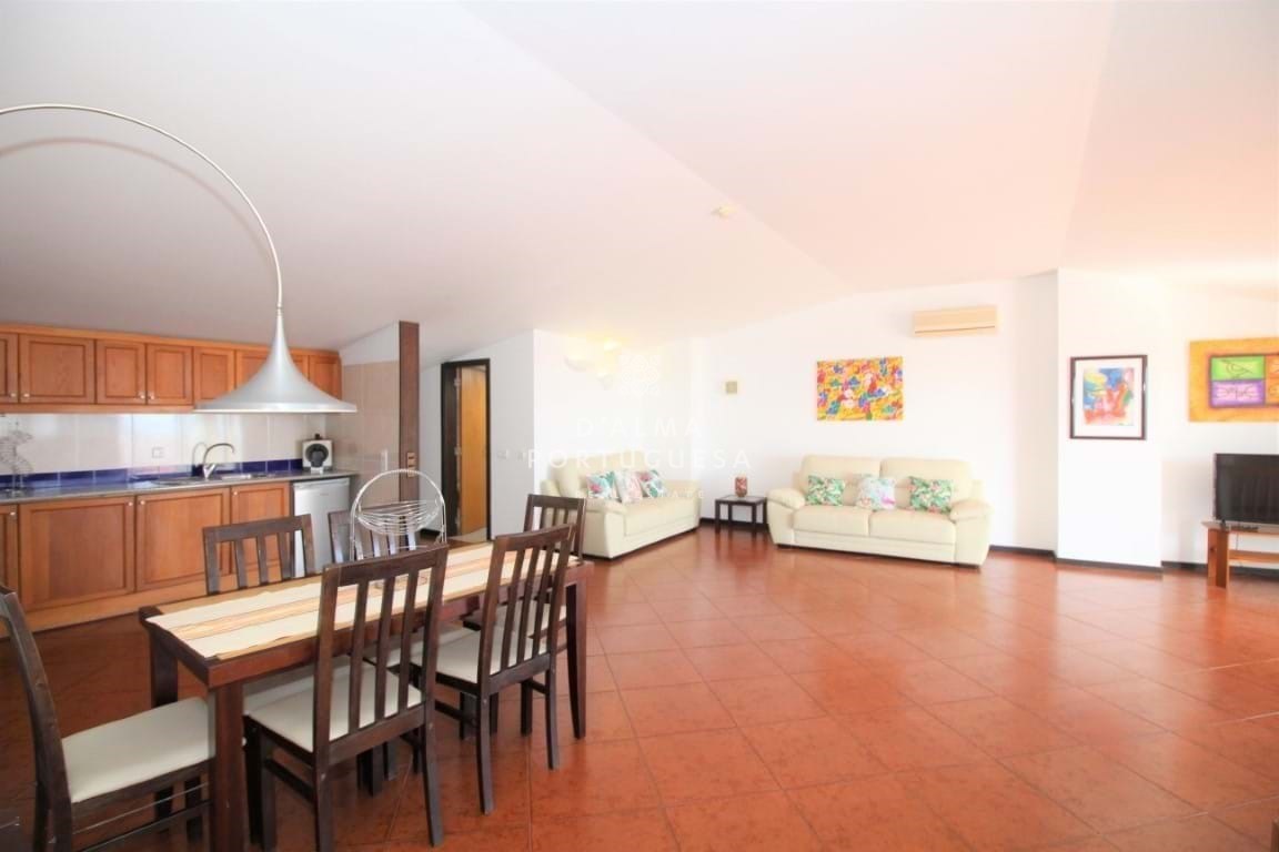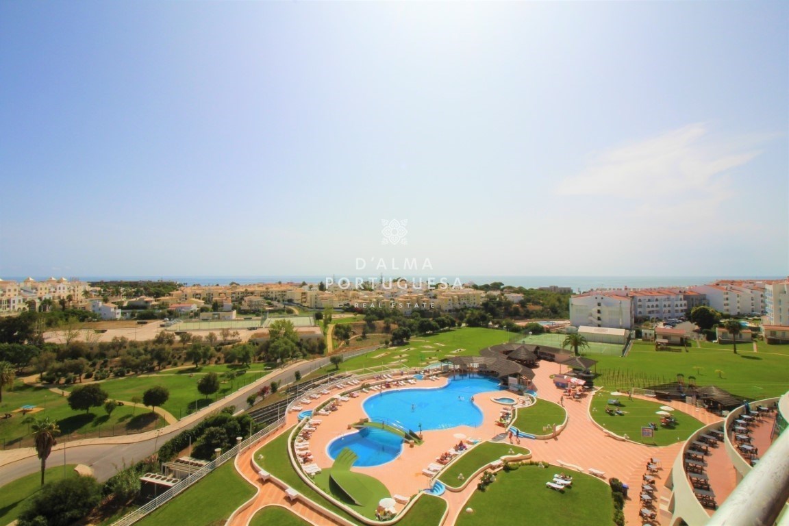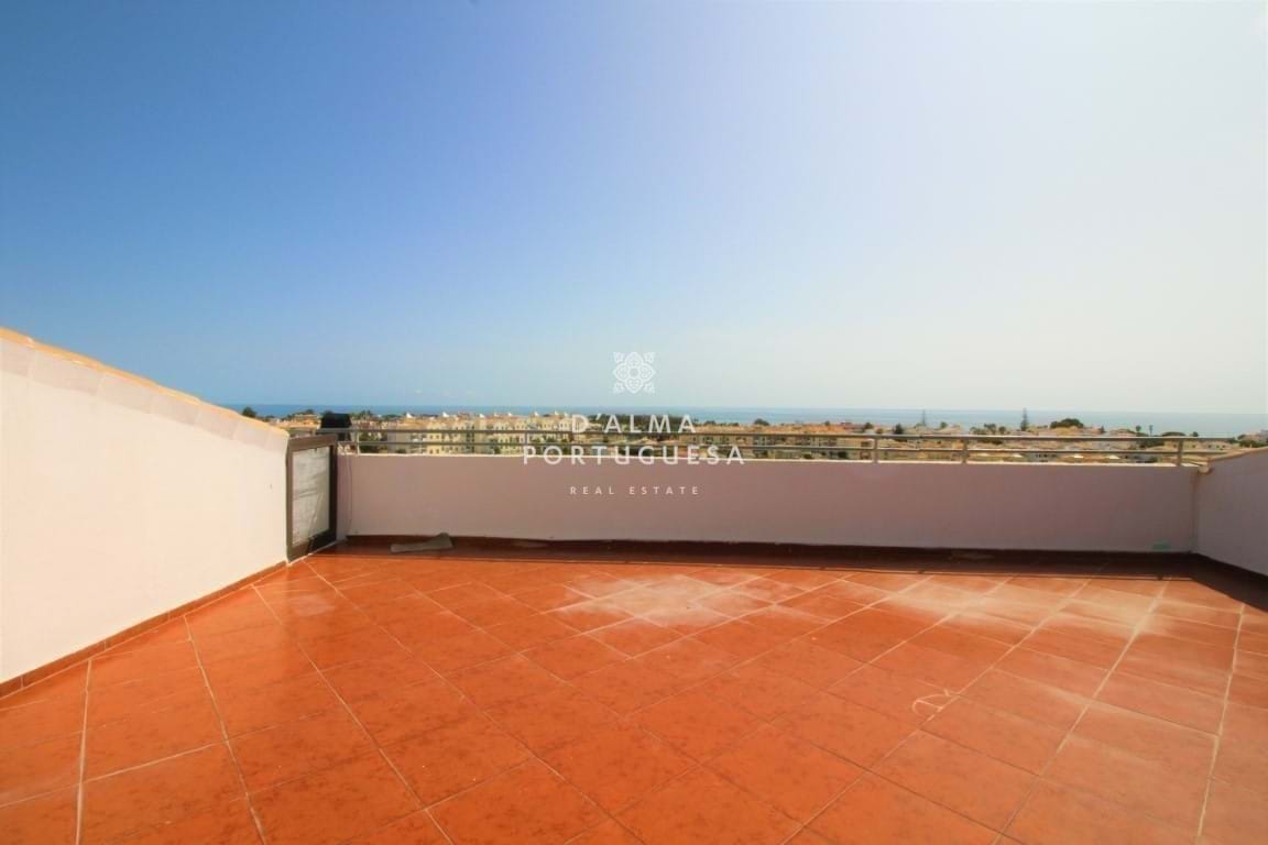 Duplex apartment T2+1 with large private terrace with sea view. Located in the heart of the city of Albufeira, at the Hotel Paraíso de Albufeira. The entrance of this apartment is characterized by an entrance hall that gives access to the two main bedrooms, both built-in closets, air conditioning and a bathroom that serves both bedrooms. The two bedrooms are south facing and have access to a shared balcony with sea and pool views. On the upper floor, there is the kitchen with an open space conce...