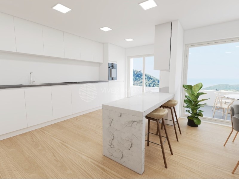Apartment | Sesimbra | Parish of Castelo 3 bedroom flat, under construction, with 134 m2 of gross area with an unobstructed view. It includes the following divisions: - Entrance hall - Living room with 33.80m2 in open space with 10.1m2 kitchen, fully equipped - 2 suites - 1 bedroom with built-in wardrobe - 1 sanitary facility - 1 balcony with 11.3 m2 -Parking - Plenty of natural light, large door and window frames - Air conditioning and central vacuum - Excellent sun exposure Located in ...