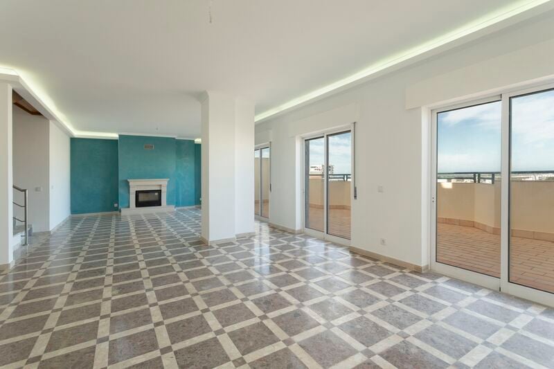 4 Bedroom duplex flat with private pool on top terrace, in the centre of Faro, very close to the Hospital. With a gross private area of 277 sq m, it consists of 4 bedrooms and another space that can be used as an office, 3 bathrooms, a 55sqm living room with fireplace and fireplace and connection to a spacious balcony; laundry, several other balconies and terraces with views of the city and the sea. On the ground floor we find the living room, kitchen and laundry, on the first floor are located ...