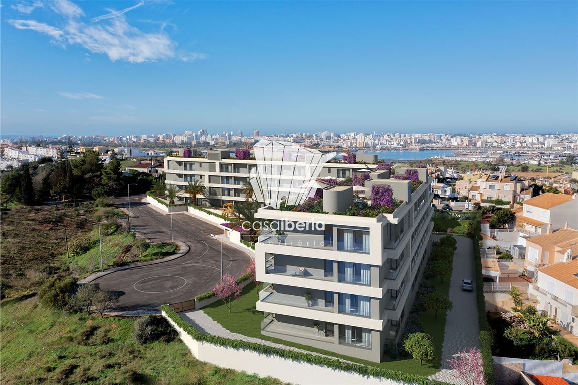 Magnificent apartment inserted in a luxury gated community, quiet area, within walking distance of the picturesque village of Ferragudo, with flats Penthouses, T3, T3 duplex, T2 and T1.In Ferragudo you can find wonderful beaches, cafes, restaurant, local market, post office, pharmacy, etc.This development will be built with high quality standards, beautiful garden with local plants, swimming pool, each flat will have a garage place. Comprising of open plan fitted kitchen with communal dining ro...