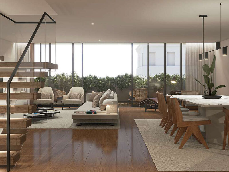 Apartment 4 duplex with 3 fronts, 511 sq m total area, 201sq m of outdoor area, with garden, swimming pool and box for 4 cars, inserted in new development to be born in Nevogilde in an intersection street with Avenida da Boavista, in front of the City Park and a few minutes from The Cheese Castle, beaches of Foz and Matosinhos. A gated community, with 7 exclusive apartments, all with its independent entrance, with gardens, balconies, terraces and private pool. Composed of apartments T4 and T4 +1...