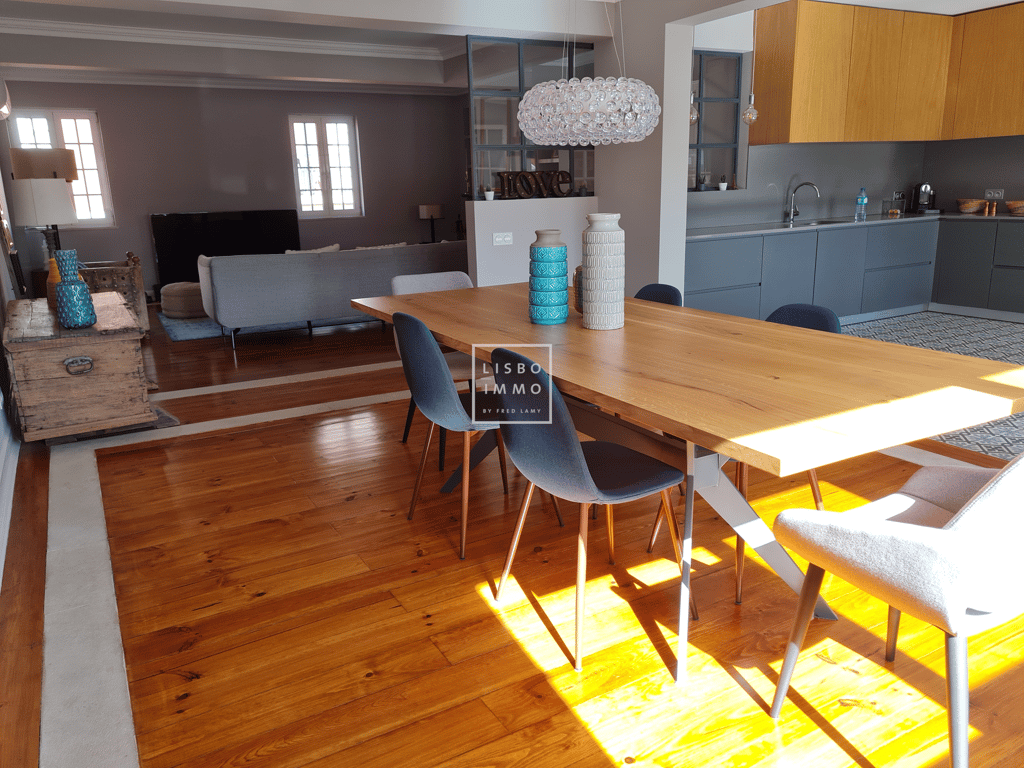 Duplex of 231m2, 4 bedrooms, on the 2nd and last floor without elevator of a charming building, 100 meters from the basilica and the garden of estrela, in a very quiet street, with a clear view from both sides, the charm of the old, with a tasteful renovation. This crossing apartment, with many windows, has been completely renovated recently, with noble and quality materials, to bring modern comfort in new volumes. The "living space" occupies a prominent place on the first floor, you find a lar...