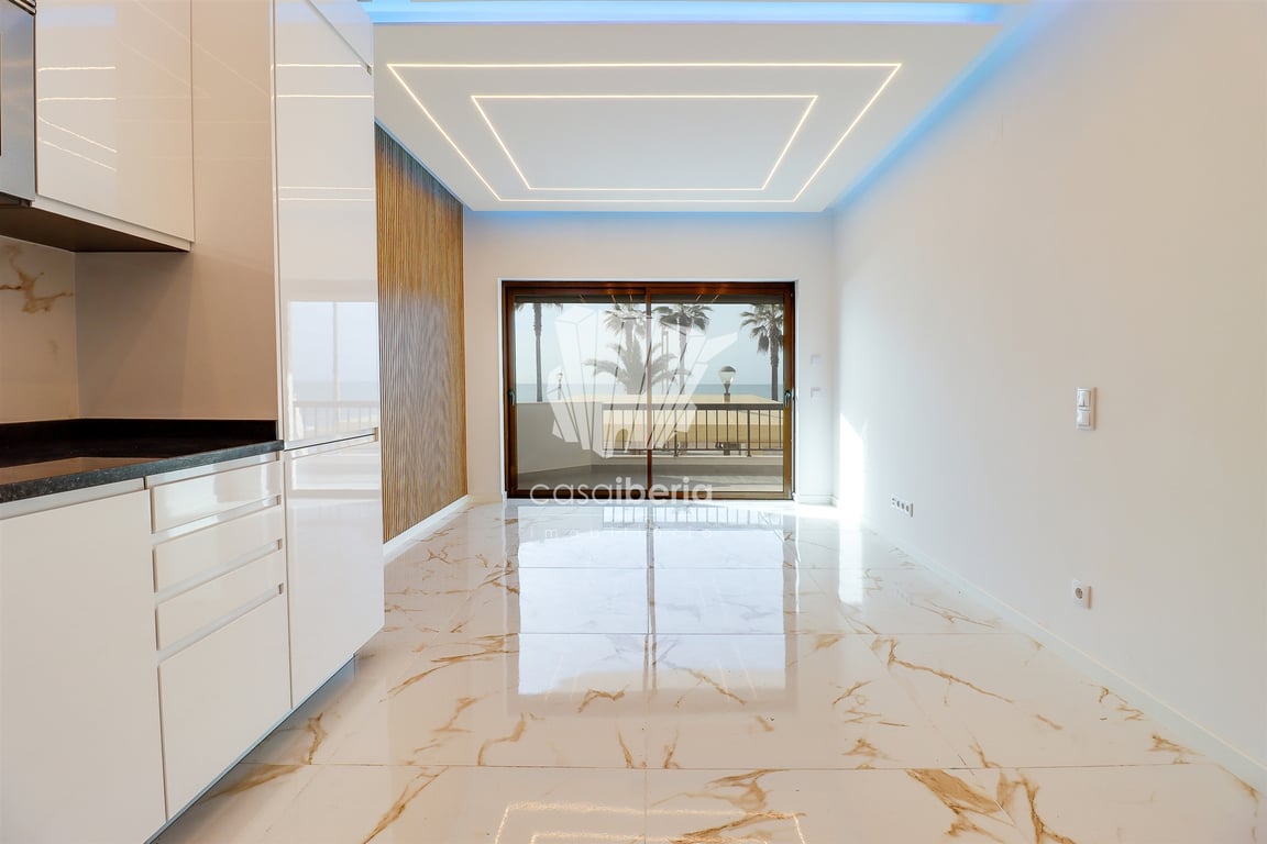 We present this magnificent 3 bedroom apartment, fully renovated, located in an absolutely privileged location on the first line of the sea.A unique opportunity for those looking for comfort, modernity and a breathtaking view of the ocean.The property has three bedrooms, one of which is en suite, ensuring privacy and convenience. It also has a full-service bathroom, with contemporary finishes and high quality materials.The modern kitchen, fully equipped, integrates harmoniously with the living r...