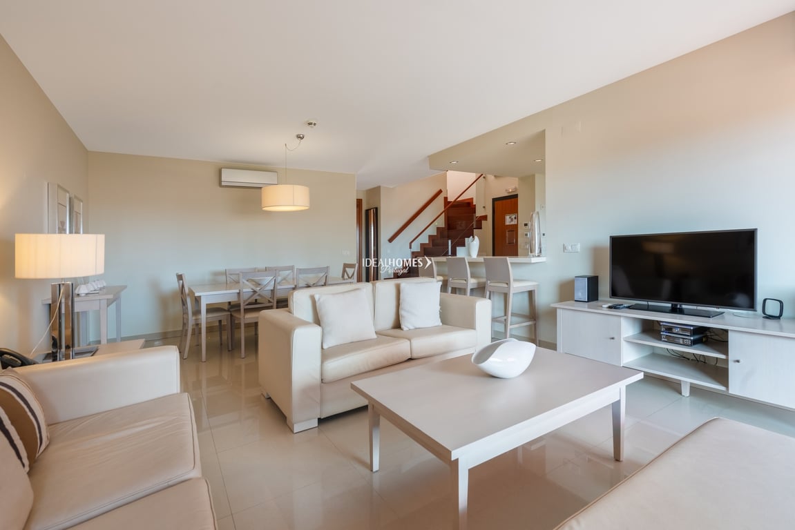 Nestled within the prestigious landscape of a sought-after golf resort in Alcantarilha, this exceptional 2+1 bedroom apartment epitomises luxury living at its finest. Boasting panoramic vistas and an array of upscale amenities, it seamlessly blends elegance with comfort, presenting an ideal haven for families and golfers lovers alike. On the main level, an expansive open-plan layout comprises a lounge, a dining area and a contemporary kitchen boasting top-tier appliances. It also features two s...
