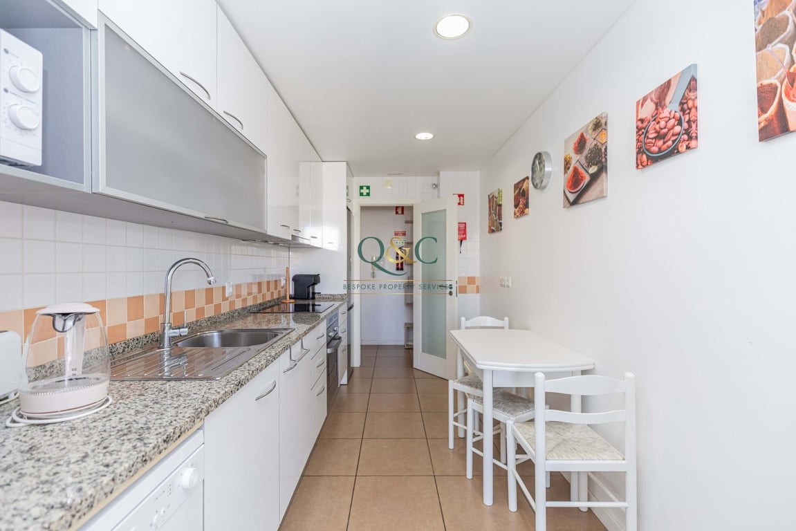 Located in the coastal town of Quarteira, a short walk from Praia do Forte Novo beach, discover this charming, well-maintained one-bedroom flat, offering the perfect blend of comfort and convenience. South-facing, it is very bright. Upon entering, you are welcomed by an entrance hall that leads to the living room with access to the spacious balcony with table and chairs to enjoy the beautiful sea view. The kitchen is fully equipped with modern and sophisticated appliances, also with access to t...