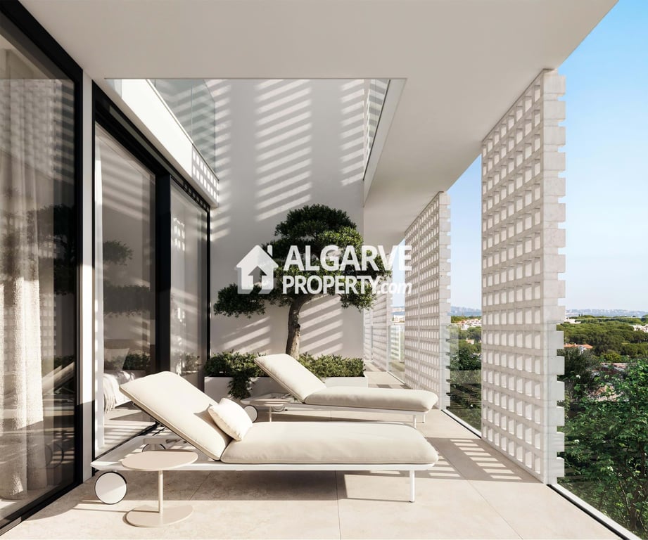 This stunning T3 apartment is located on the 2nd floor of the Botanica development. It offers a generous gross private area of 168 m2 and balconies totalling 33 m2. The unit also includes 2 private parking spaces. Botanica Vilamoura is an exclusive residential development that combines contemporary architecture with a strong connection to nature, set in one of Vilamoura’s most desirable residential areas. Designed to offer comfort, functionality, and outdoor living, the condominium provides a b...