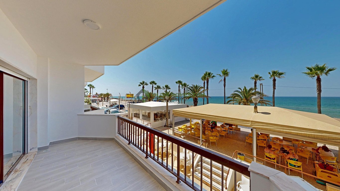 This contemporary 82.0 m2 Frontline 3 Bedroom apartment offers a harmonious blend of modern design and breathtaking coastal views. The single-floor layout encompasses two bathrooms, and a kitchen, creating a fluid and functional living space. The property's standout feature is its prime beachfront location, evident from the expansive balcony that provides unobstructed views of the azure sea and palm-lined promenade. The exterior showcases a vibrant beach scene with nearby cafes and restaurants,...