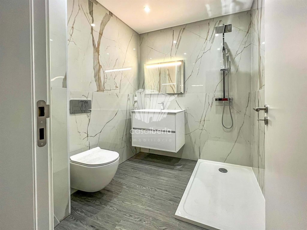 Condominium of modern and elegant architecture with garden and swimming pools.A few minutes from the shops, beaches, market and restaurants, the apartments are spread over five floors. From typologies T1 to T4 have generous areas and large balconies, some with unobstructed views over the Ria Formosa.The apartment consists of entrance hall, large common room, integrated and equipped kitchen, terrace, one bedroom en suite with wardrobe, and two bedrooms with balcony and built-in wardrobes, and a b...