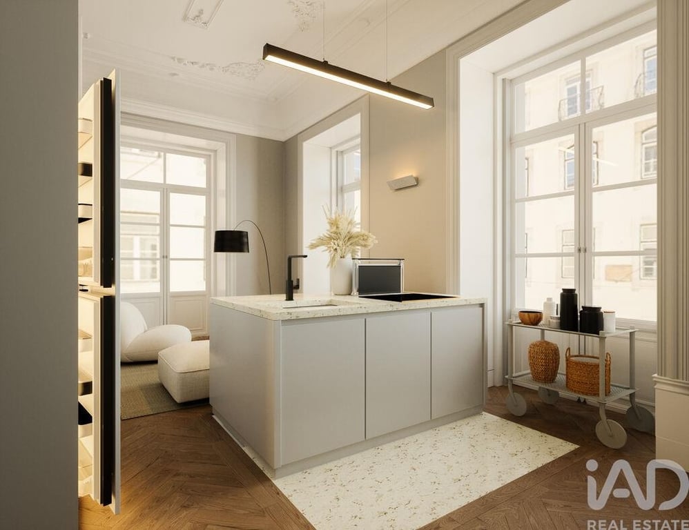 1st floor |T1| 65 m2 | NEW SIXGILD DEVELOPMENT – RUA DOS DOURADORES 1 bedroom apartment of 65 m2 inserted in the new Sixgild development located in the heart of downtown Lisbon, in a Pombaline building of rare beauty, 3 steps from the Tagus River and the main tourist attractions in the city. Apartment consisting of Hall, 1 Suite, living room and kitchen in Open Space with an area of 15.80 m2 with balconies with a total area of 1.50 m2. With very good finishes, with wooden floors applied ...
