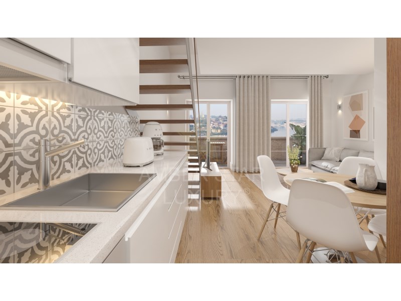 This studio apartment is located in the heart of the historic area of Vila Nova de Gaia. This fraction is part of a property with an architectural characteristic that maintains the standards that used to exist as an emblem of the region, with its historical refinement that respects the traits that make up Portuguese culture. The fraction located on the 2nd floor, with west/east solar orientation, has a useful area of 65.85m2 and a balcony/terrace area of 43.88m2. The kitchen will come with Bosc...