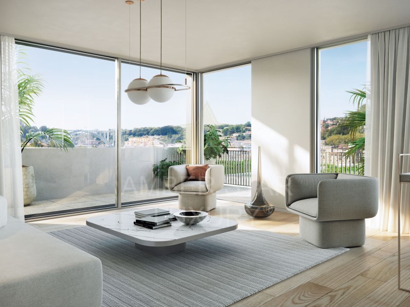 3-bedroom apartment in a new development in a private condominium that will be built on the riverside of Vila Nova de Gaia, on the south bank of the Douro river. In addition to the excellent finishes it has, this house is also distributed in excellent areas, occupying the top floors of the development. It has its areas divided as follows: -Living room of 29.80sqm; -Kitchen of 10.80sqm; -Toilet of 2.60sqm; -Laundry of 2.60sqm; -Dining room of 29.80sqm; -Suite of 16.60sqm and bathroom of 6.05sqm...