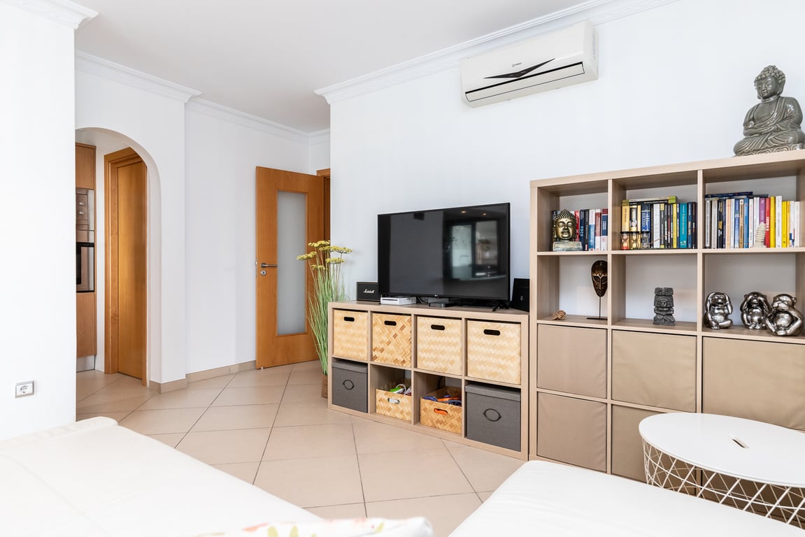 2 bedroom apartment inserted in a building of a recent construction in the centre of the village with private parking space on the ground floor, the property being located on the 1st floor with lift access.The flat has an entrance hall, 2 bedrooms, both with built-in wardrobes, 1 family bathroom, large living/dining room and kitchen equipped with breakfast bar separating both rooms and a storage room/pantry. There is an "L" shaped balcony facing south with access through the living room and the ...
