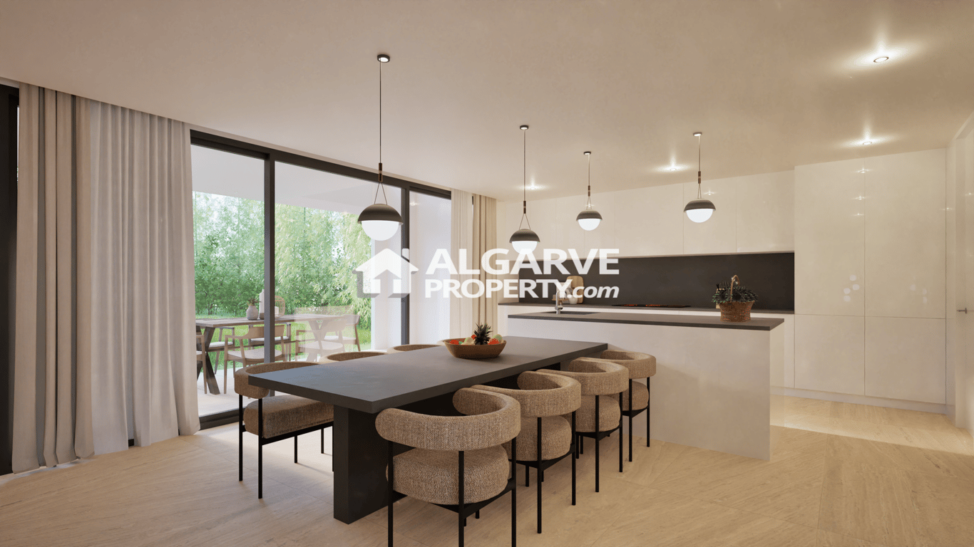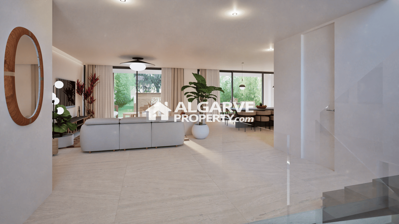 High-End Semi-Detached four bedroom Villa Under Construction, located between Vilamoura and Olhos de Água this modern villa combines comfort, functionality, and an exceptional lifestyle. Just 10 minutes from the beach, it offers the perfect setting for a relaxing, enjoy easy access to the coast, ideal for leisure and outdoor living. With a total construction area of 220 sq.m. you will find on the ground floor a fully equipped open kitchen with an adjacent laundry room, spacious bright lounge wi...