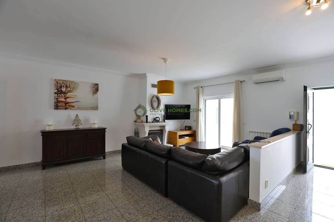 This expansive property in Almancil, offers a harmonious blend of comfort and functionality across its three floors. The home boasts plenty of living space, including three bedrooms and three bathrooms. The primary bedroom is particularly generous at 33.0 m2, providing ample space for relaxation. The ground floor features a bright, open-plan living and dining area. Large windows and sliding glass doors allow natural light to flood the space, while also providing access to outdoor areas. The liv...