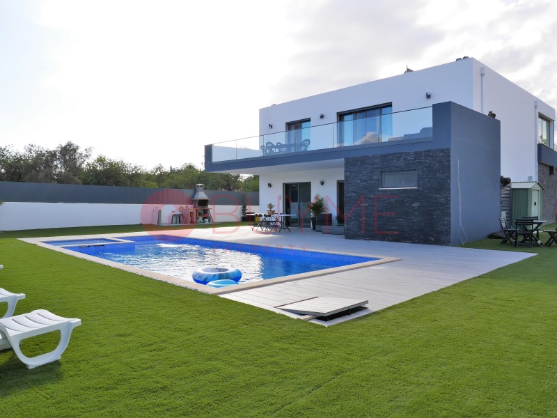 Experience this contemporary detached villa in the heart of Almancil. Spacious and bright, it features inviting outdoor leisure areas with pool, BBQ, and shaded lawn. The independent first floor offers rental potential, while each room ensures comfort, elegance, and practicality for everyday living without leaving the city centre. Key Features: 6 bedrooms (5 en-suite) Living and dining rooms on both floors Fully equipped open-plan kitchens Terraces overlooking the pool Outdoor pool with BB...