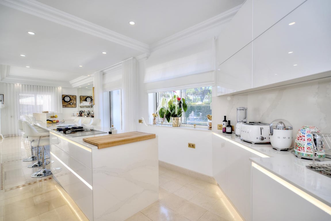 Delightful and ultimately elegant four-bedroom villa located in the peaceful and popular San Lorenzo neighborhood of Quinta do Lago. This spacious and sunny mansion comprises an open-concept lounge, kitchen, and bar with a built-in dining table. The recently refurbished property has the highest quality kitchen fittings and equipment, such as Bora and Bosch. An impressive state-of-the-art BBQ area is included in the fully furnished outdoor kitchen and covered al-fresco dining area. The beautifull...