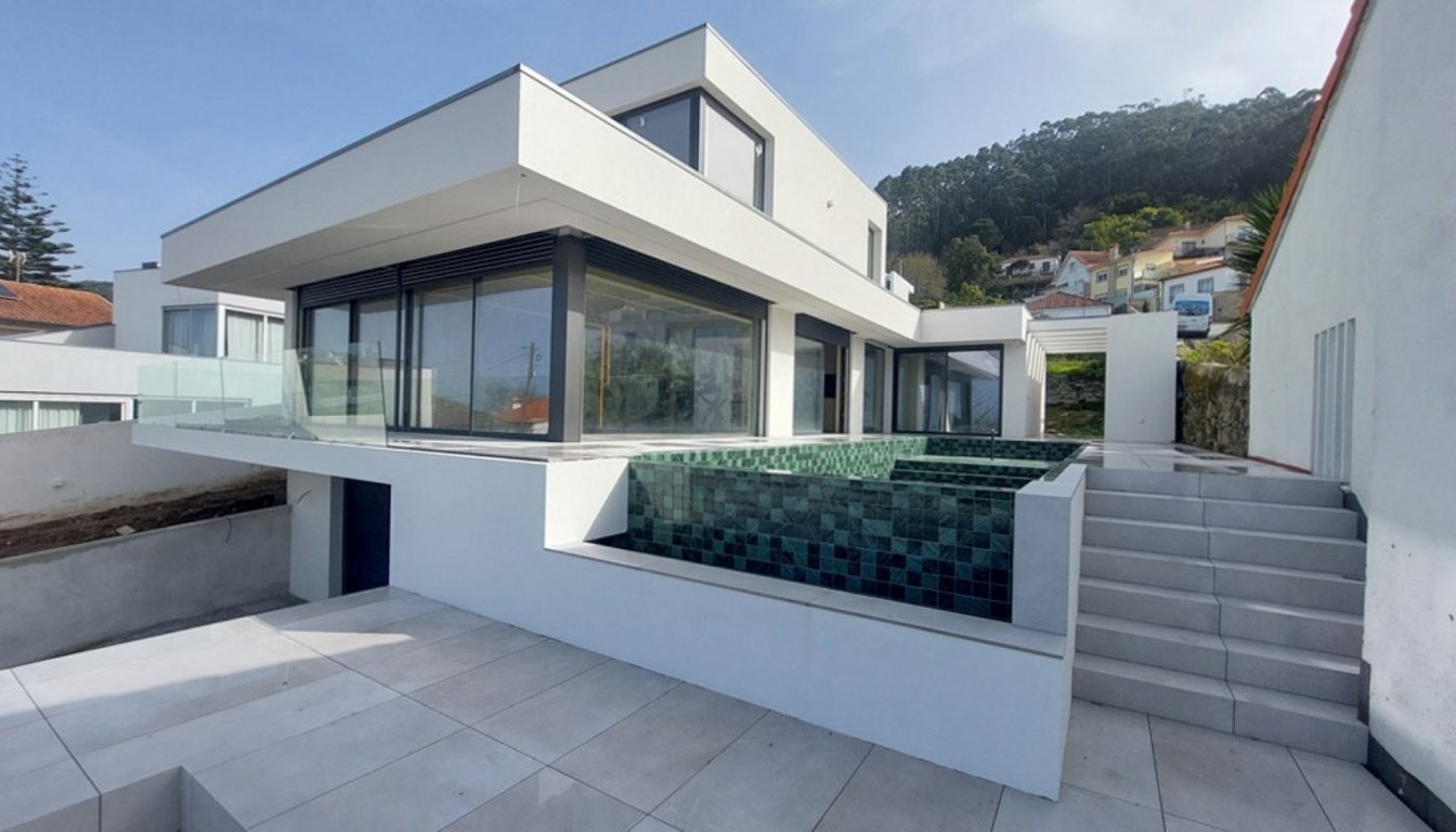 Sale of extraordinary 3-bedroom villa under construction, Areosa, Viana do Castelo.Fantastic new villa in the final stages of construction, characterized by contemporary architecture that reflects all the beauty, luxury and sophistication in perfect harmony with the surroundings and views over the long stretch of sea. Built on three levels, with attention to every detail and the highest quality standards! 3 bedroom villa, with 4 fronts, set in a plot of 702 m2 and a construction area of 331.7 m2...