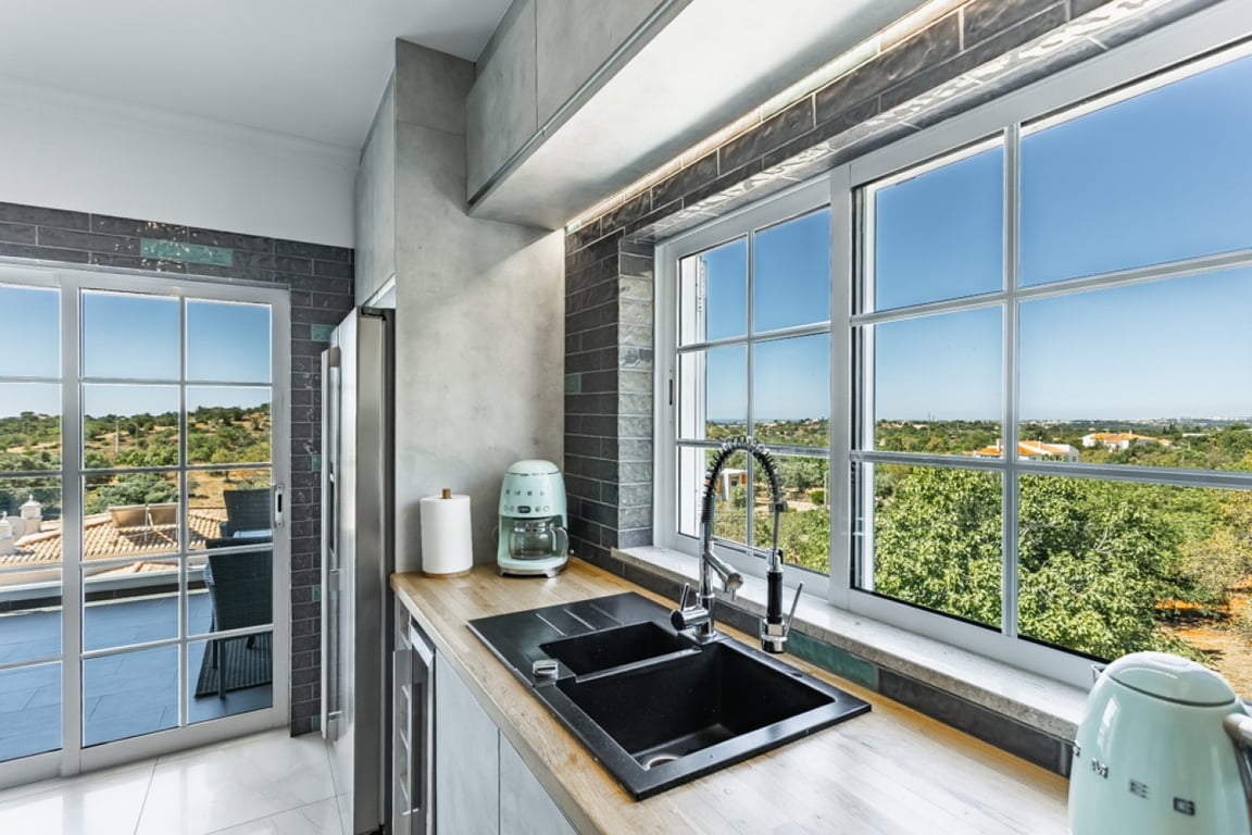 Elegant five-bedroom villa, spread over three floors, located in a quiet area on the outskirts of Boliqueime, where the tranquillity of the Algarve countryside is combined with open views of the mountains and the sea. The ground floor has an open-plan living and dining room, facing south, with good sun exposure and direct access to the terrace with built-in barbecue. The recently renovated kitchen is equipped with integrated appliances and offers unobstructed views of nature. On this floor ...