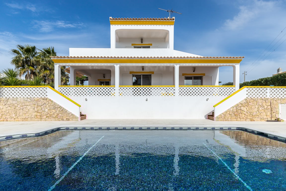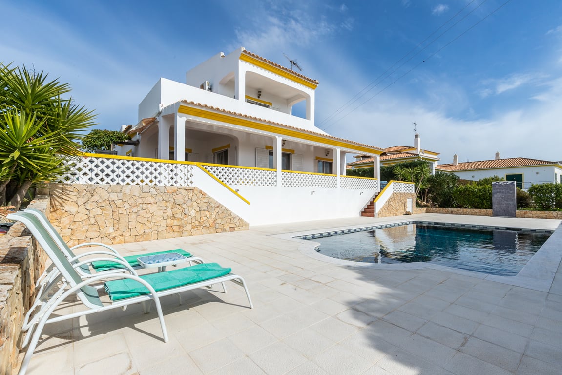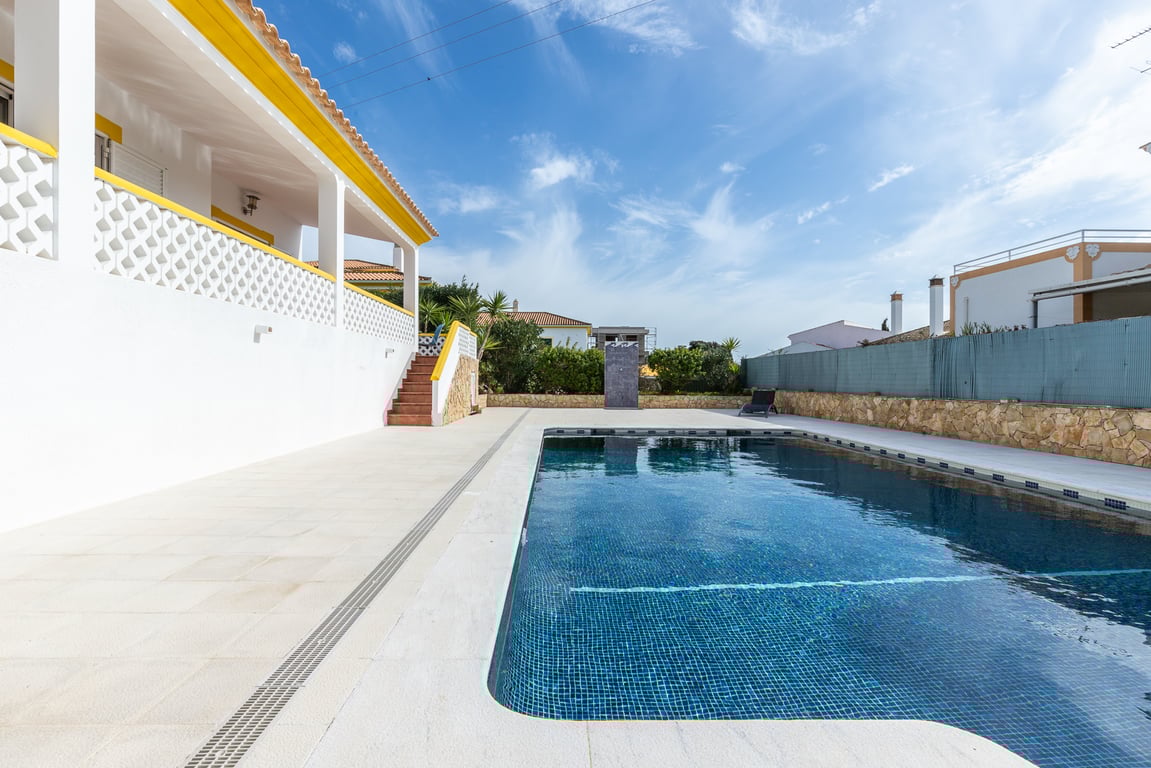 Magnificent 3 bedroom detached villa, set in a large plot in Quinta do Sobral with Garage and Private Swimming Pool!Villa consisting of 2 floors plus a garage, has a covered area of 197m2 and is located on a grand plot of 850m2.The ground floor of the property has an entrance hall, 2 bedrooms, 1 bathroom, fully equipped kitchen, living and dining room with fireplace, garage and large patio with the possibility of parking for several vehicles. All rooms access the patio area.The 1st floor has 1...