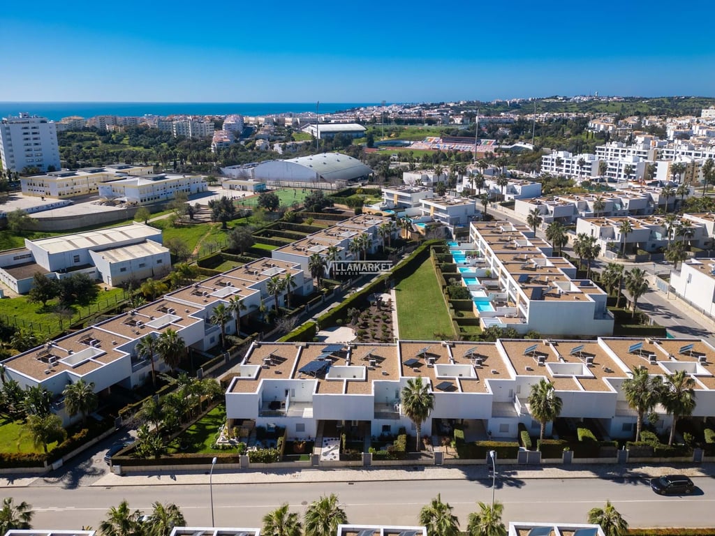 Magnificent villa with modern design with 154 m2, located in the luxurious Design Villas condominium in Albufeira. On the ground floor you will find a spacious entrance, an American kitchen equipped in open space, a common dining and living room with high ceilings that gives access to a large terrace with pool and garden, a bedroom and an independent bathroom. On the 1st floor you will find a master suite complete with terrace overlooking the pool and garden, another suite with closets and terra...