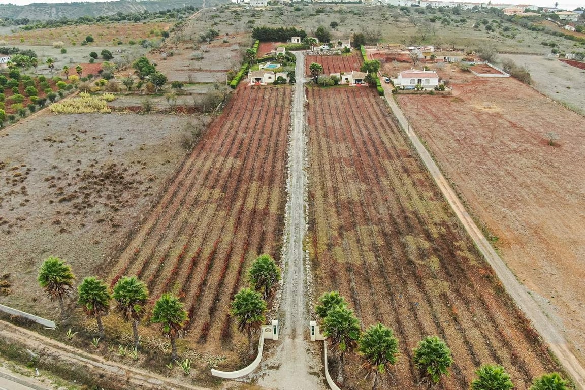 Large property composed of three villas, two with two bedrooms and one with three bedrooms, for sale, Praia da Luz, Algarve. Rustic style houses, traditional decoration and with large covered terraces. Each of the villas has a large living room with fireplace and equipped kitchen. The outdoor space offers BBQ, swimming pool and vineyard views to enjoy al fresco dining and a cosy atmosphere. The mature and well-kept vineyard covers more than 9,000 m2 and the grapes are used to produce an awar...