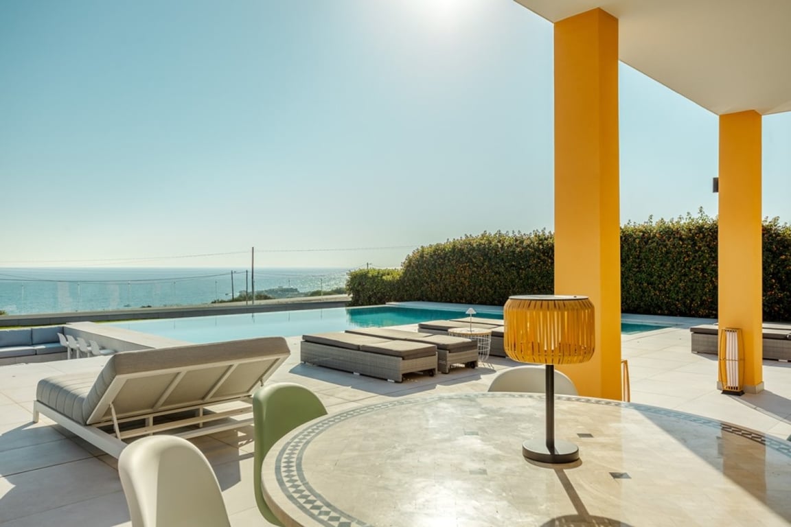 This fantastic detached villa is on the seafront and is considered one of the most exclusive villas in the Algarve. It has unobstructed sea views and a unique location where no additional construction is possible, as it is a protected natural area. This property is spread over 3 floors and consists of 5 bedrooms, all en-suite and with large windows facing south and the surrounding landscape. It also has 2 living rooms, an infinity pool, a jacuzzi on the top floor, a sauna, a gym, a cinema roo...