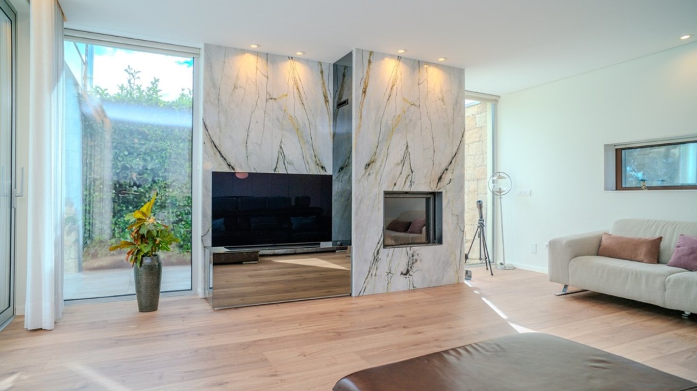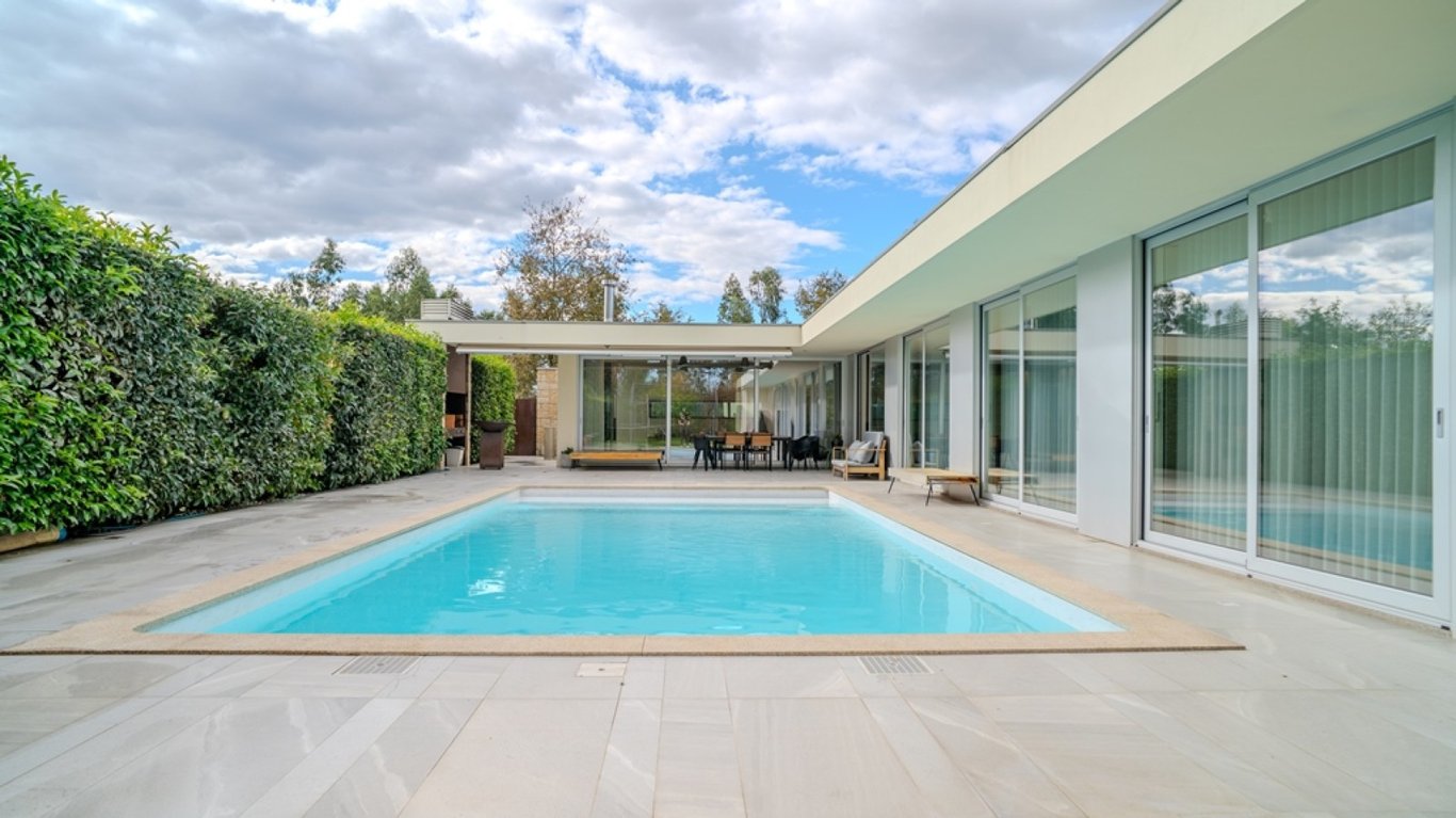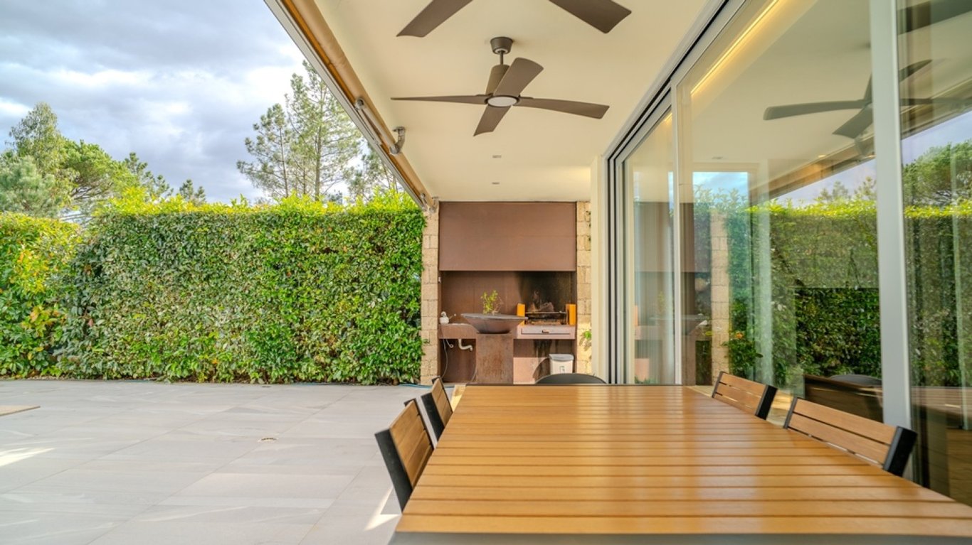 Located on the banks of the Cávado River, this contemporary-style villa is set on a plot of approximately 1000m2, complemented by two other plots bordering the river. It has a simple and intuitive layout, with the social area differentiated from the private area. All rooms have access to the outside, from where you can reach the heated swimming pool, barbecue area and garden area. It has excellent sun exposure, maximized by the glazed windows that run throughout the single-storey villa. it c...