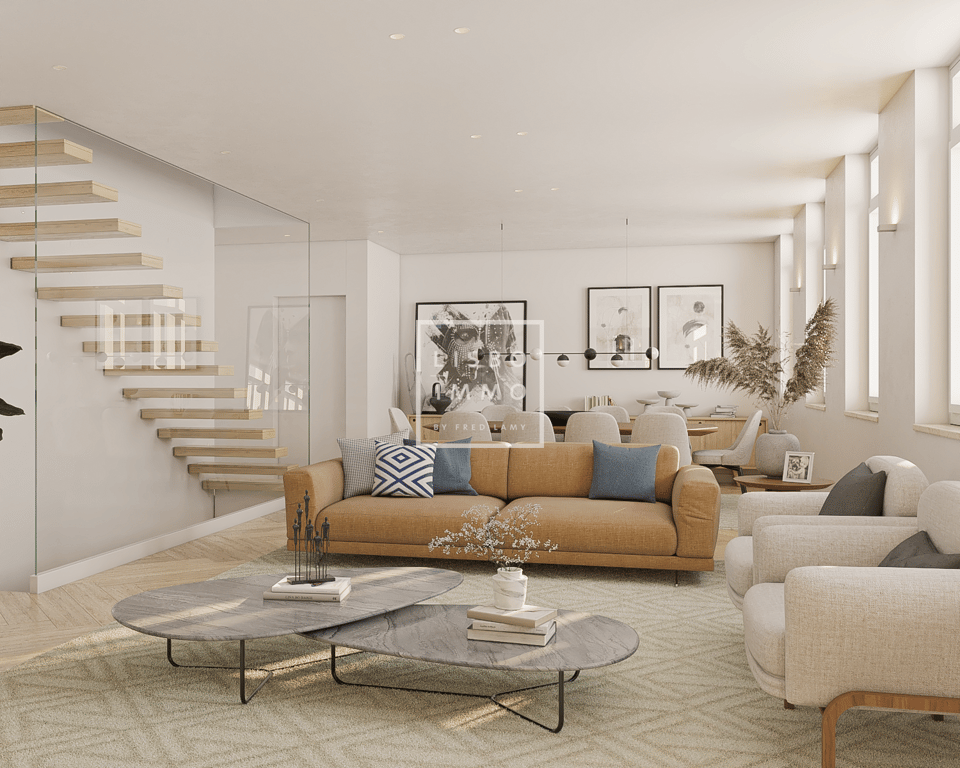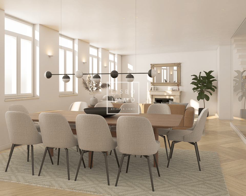 Magnificent architect's house under construction luxury T4 with 312 m2, with a garden of 16m2 and a terrace of 24m2 and 2 parking spaces in the garage. Divided into 4 floors and with work ending in August 2025, this house is undergoing a complete rebuild and renovation with high quality interiors and excellent finishes. This family property offers beautiful volumes and living spaces spread over several levels, which make it a unique and authentic place to live. Start the visit on the ground fl...