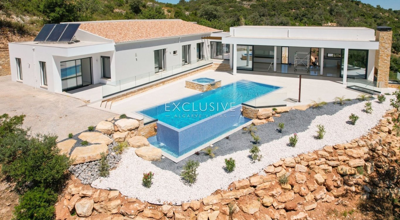 This villa is located in the hills of Loulé, providing distant seaviews and open views to the surrounding hills. Within a quiet area and distanced neighbours, this villa provides que perfect home, minutes from all amenities in the centre of Loule, Almancil, and Faro Airport. The property is composed of an open concept living / dining area and kitchen, 4 ensuite bedrooms, all on one level. In the basement, there is parking for 5 cars, electric car charging unit, technical area, laundry, and are...