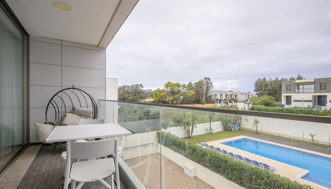 Fantastic two-bedroom apartment on the seafront, next to Madalena beach. Set in a gated community with a swimming pool, tennis court and gardens, the apartment includes a living room with a balcony, a guest toilet and an equipped kitchen with a laundry room. In the intimate area of the house, there are two suites with built-in closets. It also has a garage for 2 cars. Close to shops, services and excellent road access. CHARACTERISTICS:Area: 109 m2 | 1 172 sq ftBedrooms: 2Bathrooms: 3Garage: 2...