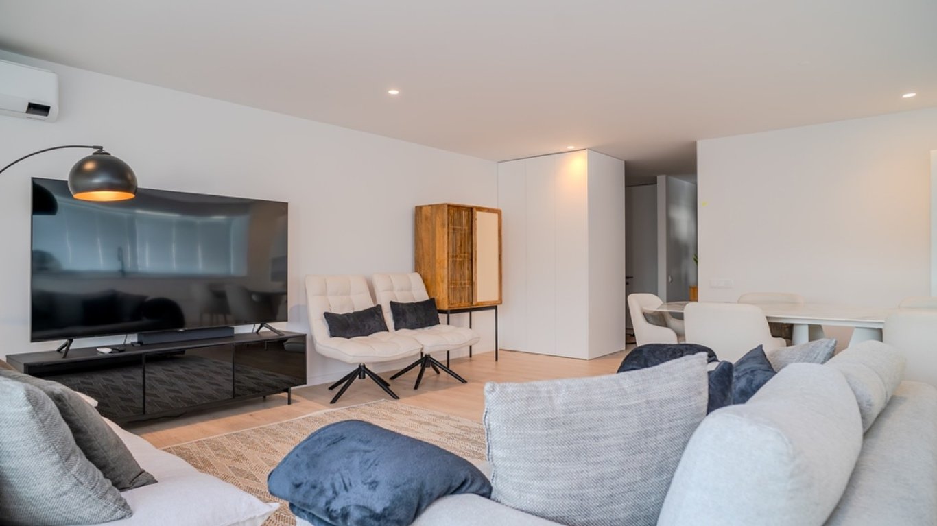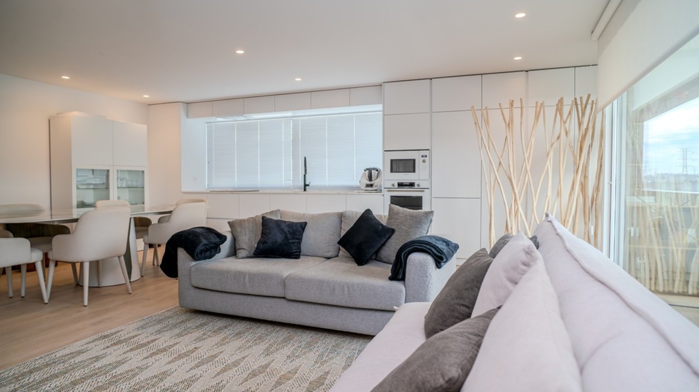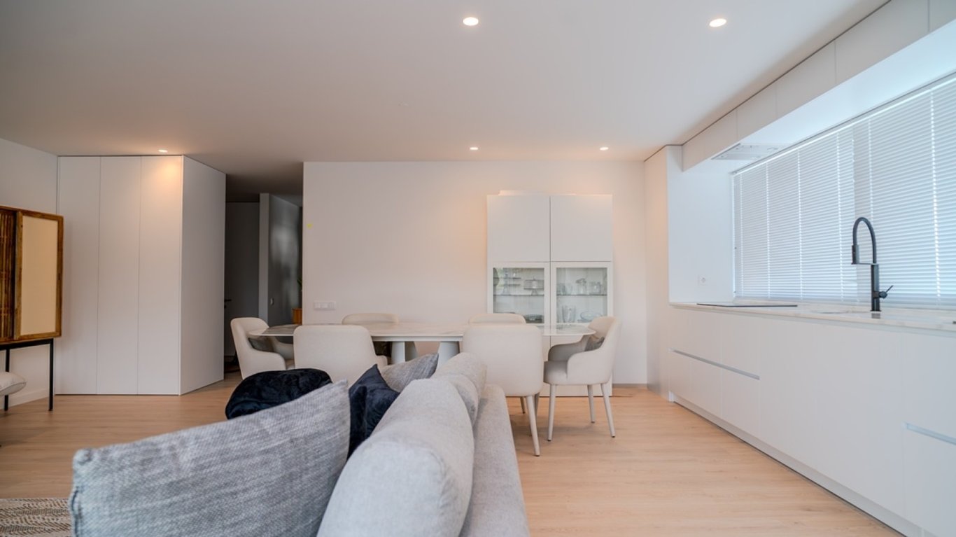 Fantastic four-bedroom apartment with two fronts - east and south - in the prestigious Maia Design II building, located in a central area of Maia that is undergoing urban consolidation. This semi-new apartment has very large spaces and lots of light. Its social area consists of a living room with a fully equipped open-plan kitchen, as well as a dining area. This space also has access to a magnificent south-facing balcony. The private area of the house consists of four bedrooms with built-in cl...