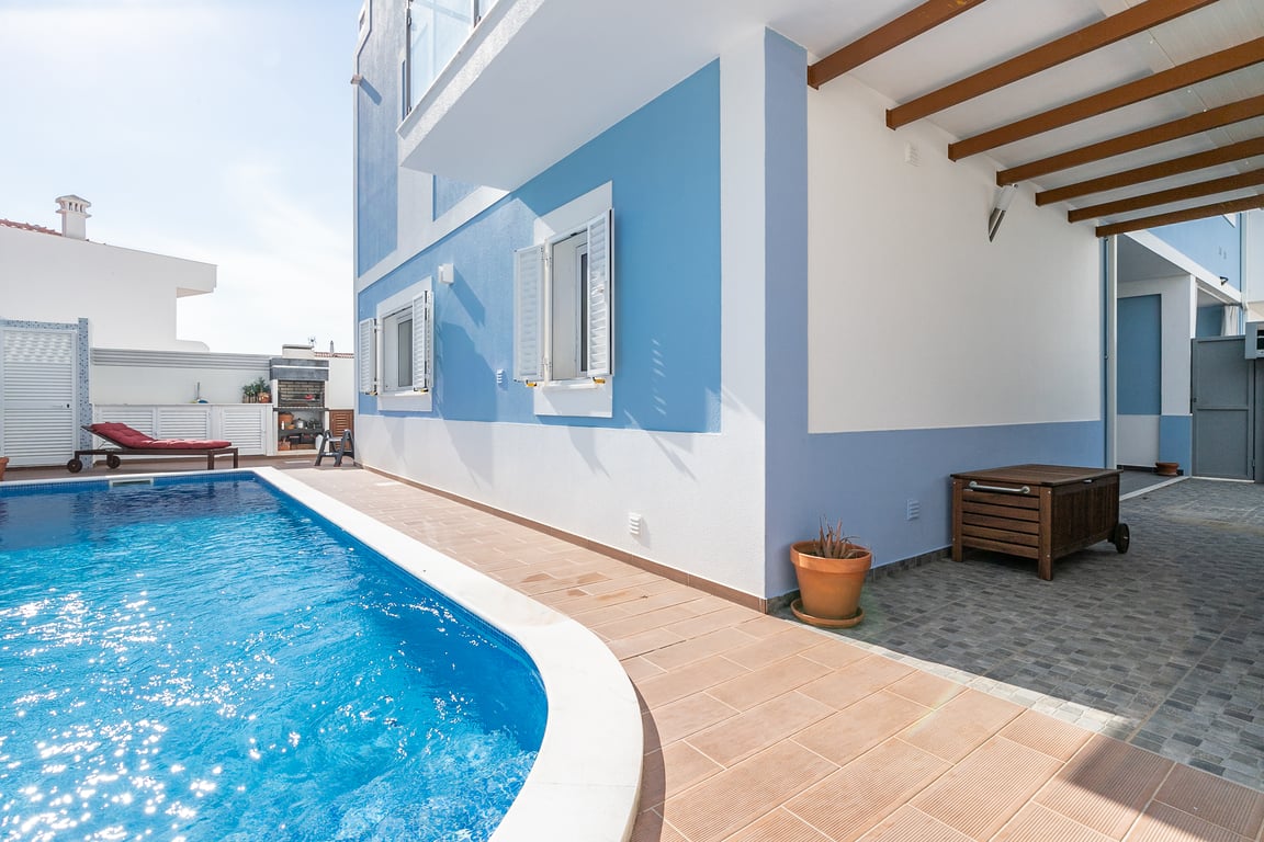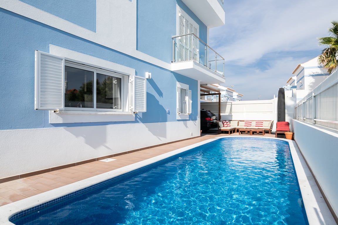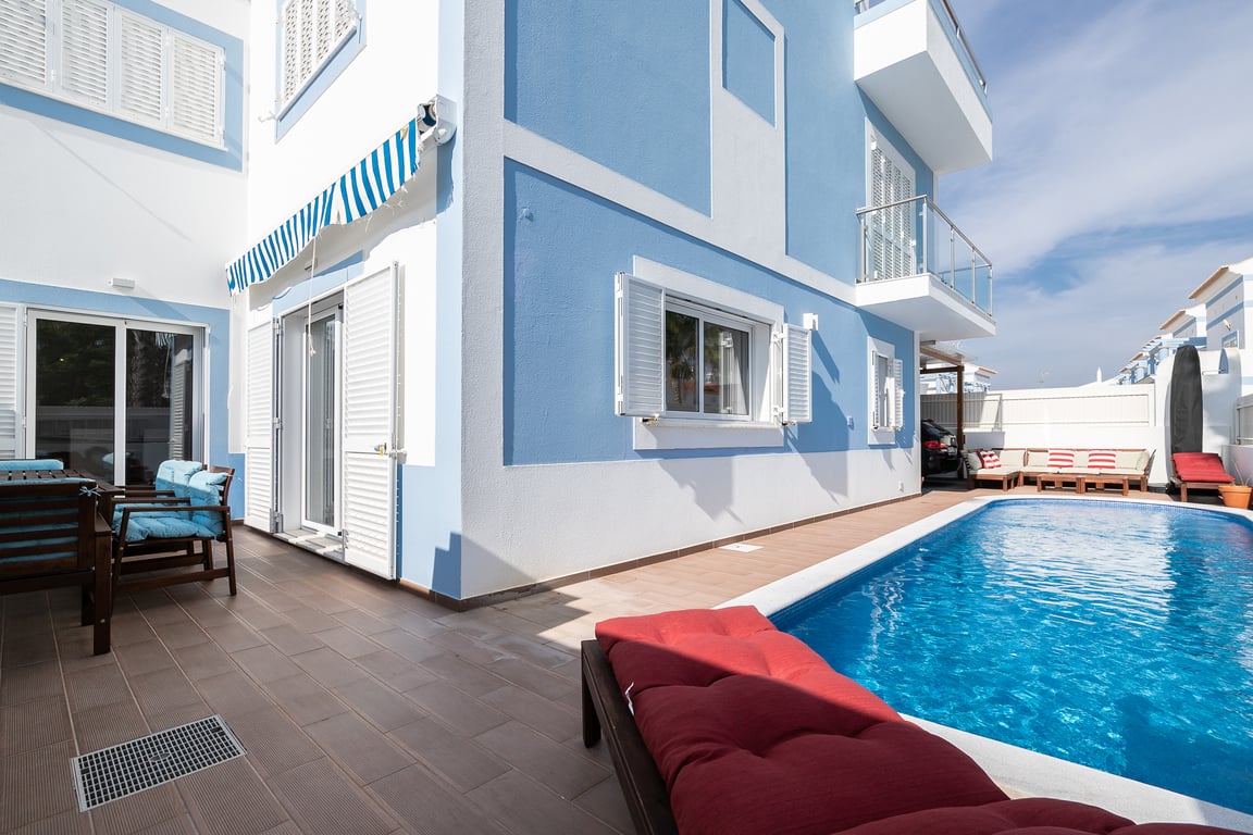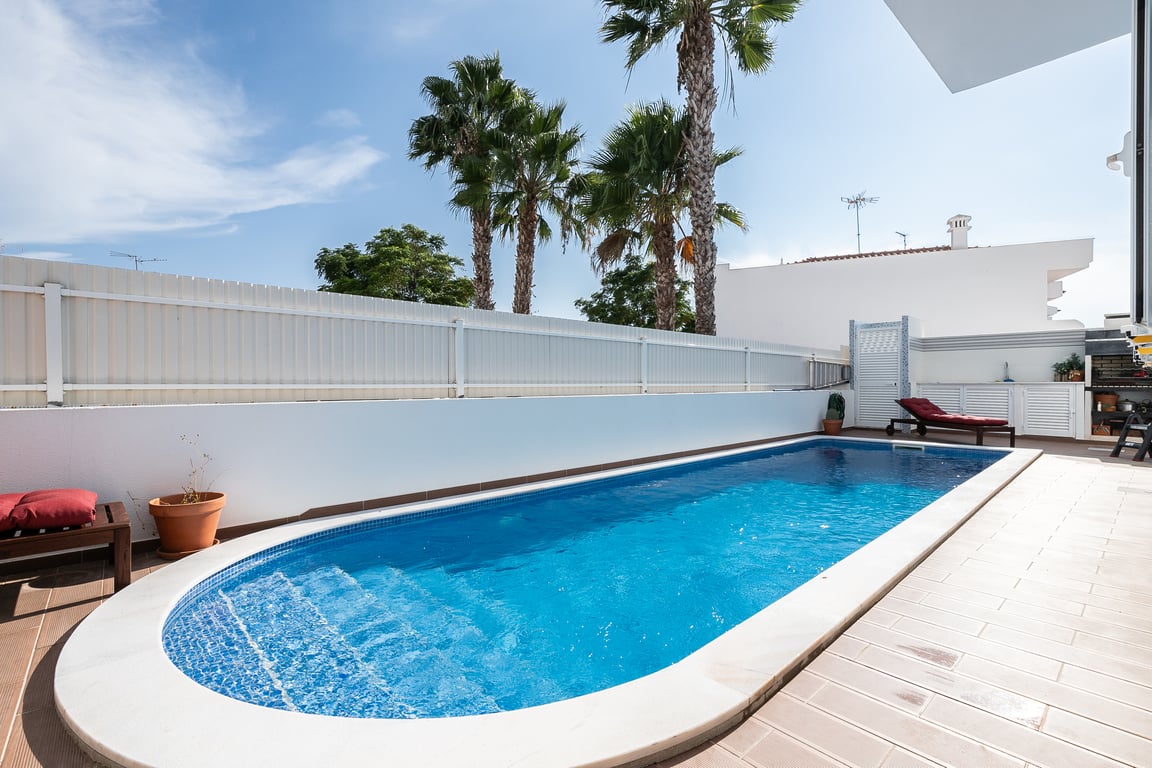 Exclusive with Algarve Manta Properties! 4 bedroom Villa with Private Pool & Parking, located in gated community in Manta Rota.Property inserted in a condominium with a total of 4 houses, this one located in the south corner, providing plenty of natural light and privacy.Consisting of 3 floors, the ground floor consisting of an entrance hall, bathroom with shower, storage room, large living and dining room and equipped kitchen. The living room and kitchen access the large patio with driveway, pe...