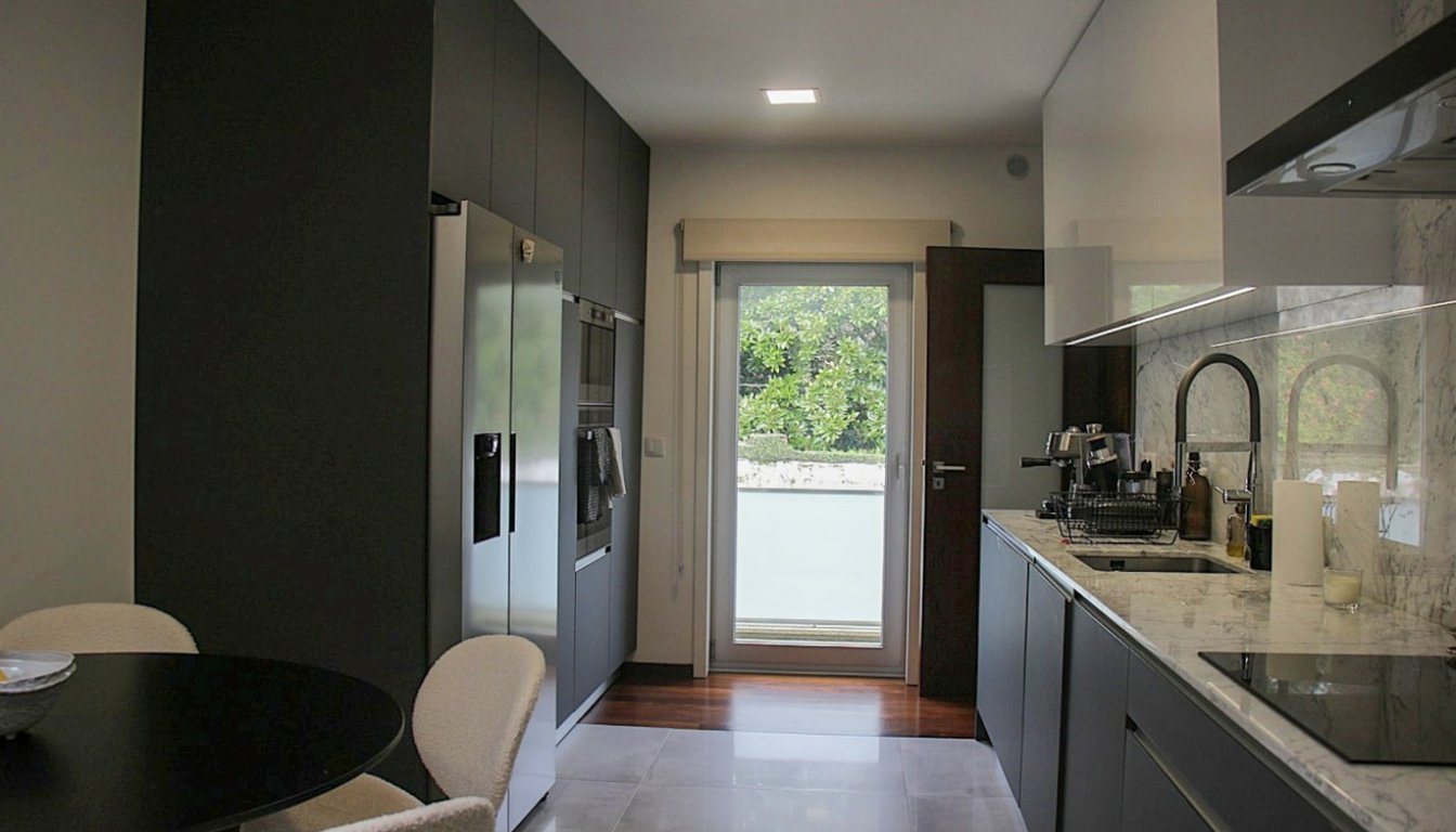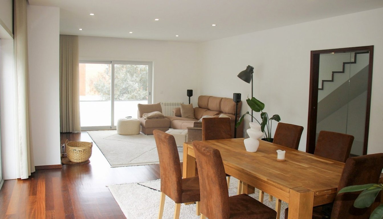 Extraordinary 3-bedroom villa for sale in Meadela, Viana do Castelo. Modern architecture, with two fronts and northeast/northwest solar orientation, located close to the city center and with good access to the A28. It is in excellent condition, used but like new. It is spread over three floors. On the first floor there is an office, a service bathroom, a laundry room and a large garage for two cars with a storage area. The second floor consists of a kitchen equipped with new appliances, a skylig...