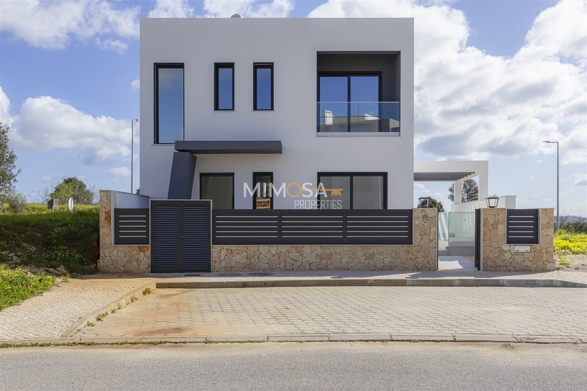 Contemporary high-end villa, completed in 2025, located in a quiet residential area in Mexilhoeira Grande, between Lagos and Portimão. Situated in an elevated position, it enjoys open views over the countryside, the Ria de Alvor and the sea.Features Recent construction (2025) Heated and illuminated pool – perfect for year-round use Basement Large garage with automatic gate Laundry room Bathroom Outdoor terrace/drying area Ground Floor Spacious open-plan living room with plenty of natura...
