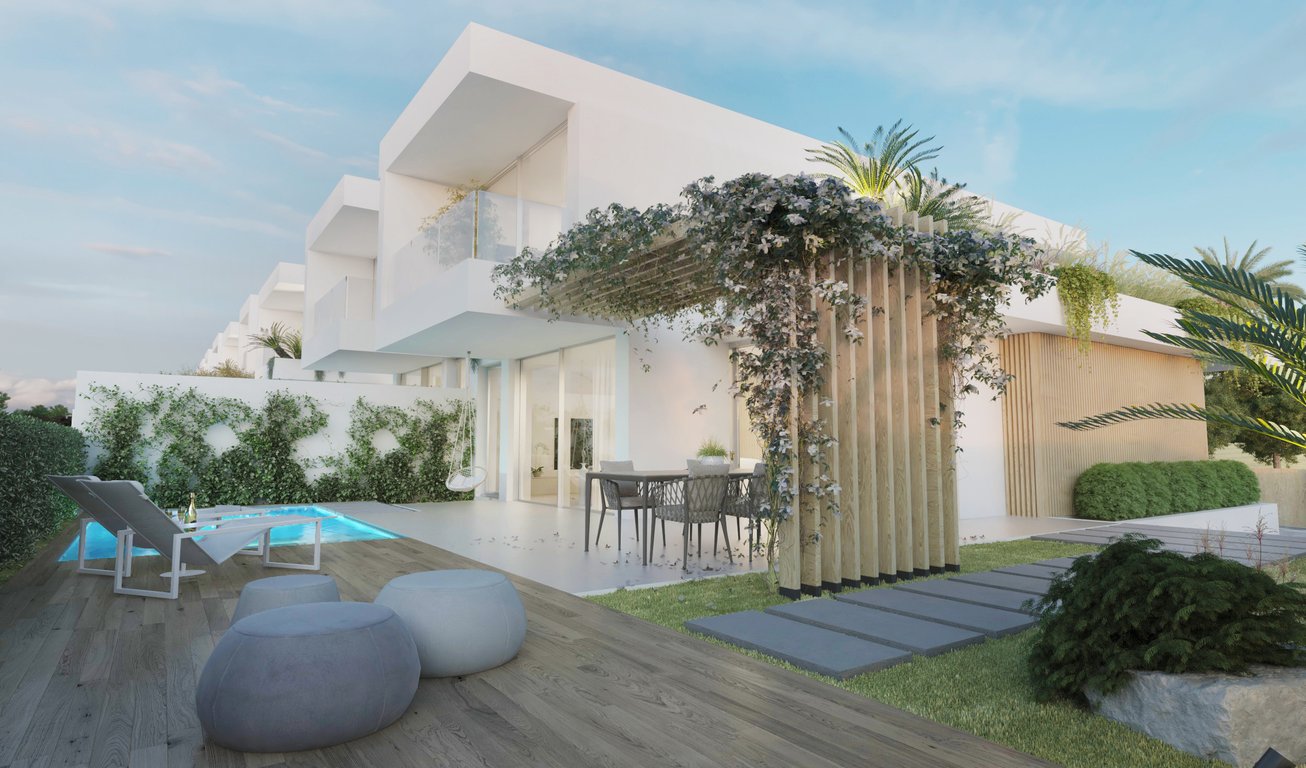 Luxury 3 bedroom semi-detached villa in new urbanization under development in Montenegro, Faro.Corner property, with construction area of 170m2 and inserted in a plot of 351.11m2, will have 2 floors.On the ground floor you will find, front patio and driveway for parking, entrance hall, large living and dining room, semi-open kitchen, 1 bedroom, 1 bathroom, outdoor terrace at the back with garden, offering possibility of construction of a private pool.The 1st floor will consist of 2 bedrooms, bot...