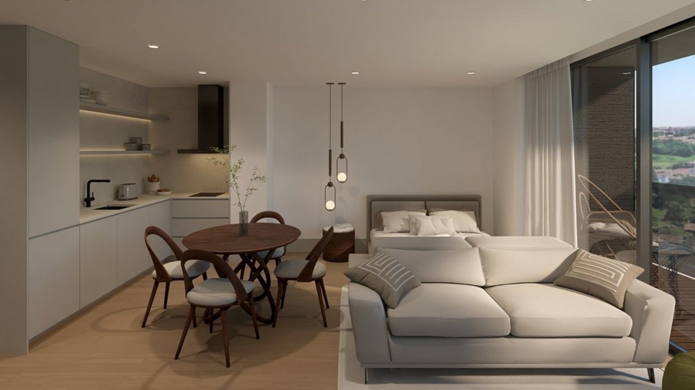 Luxury studio apartment with balcony and premium finishes, in Lurion Residences, a gated community in Vila Nova de Gaia, next to Ponte do Infante. Lurion Residences is a luxury private condominium under construction in Vila Nova de Gaia. This apartment stands out for its elegance, comfort and harmonious connection between contemporary architecture and the surrounding nature. With large, well-distributed areas, the apartment was designed to offer comfort, sophistication and functionality, priv...