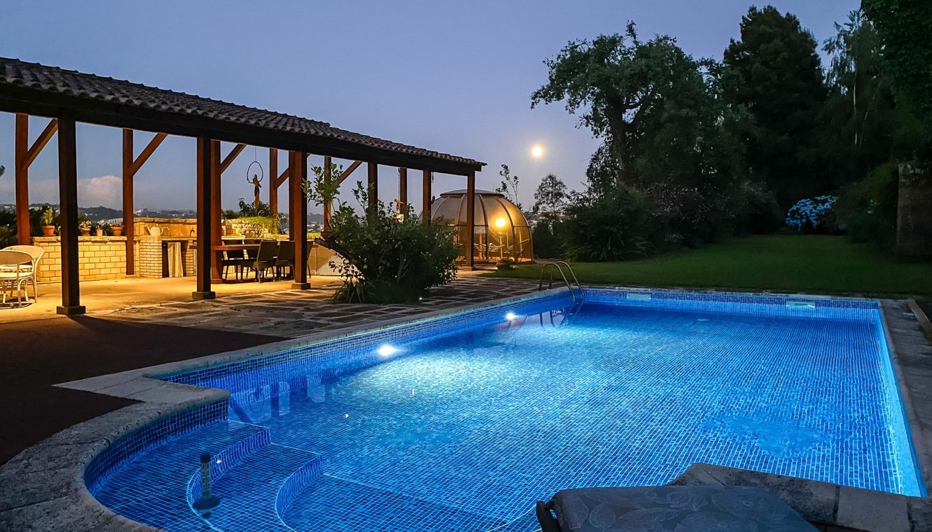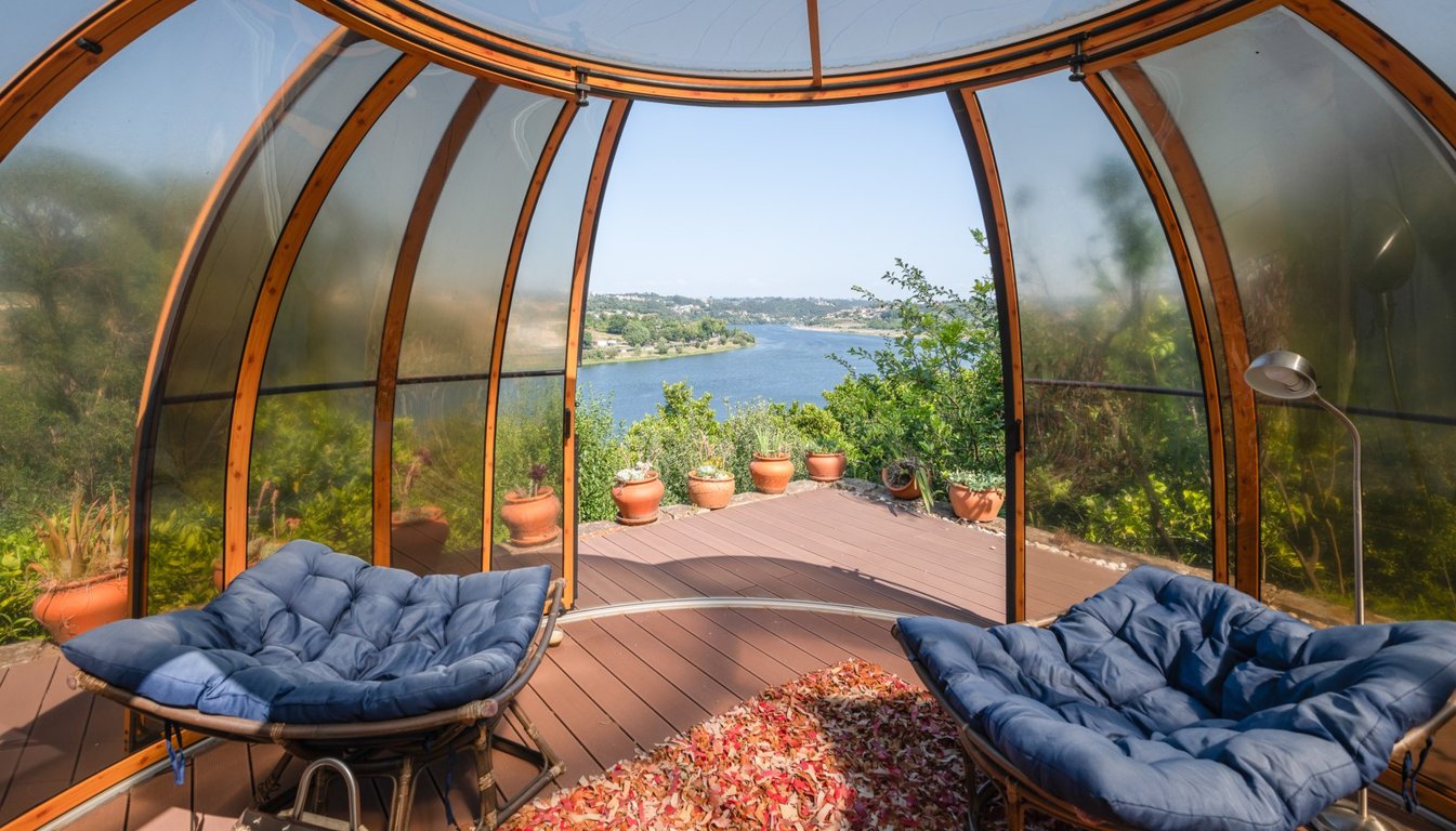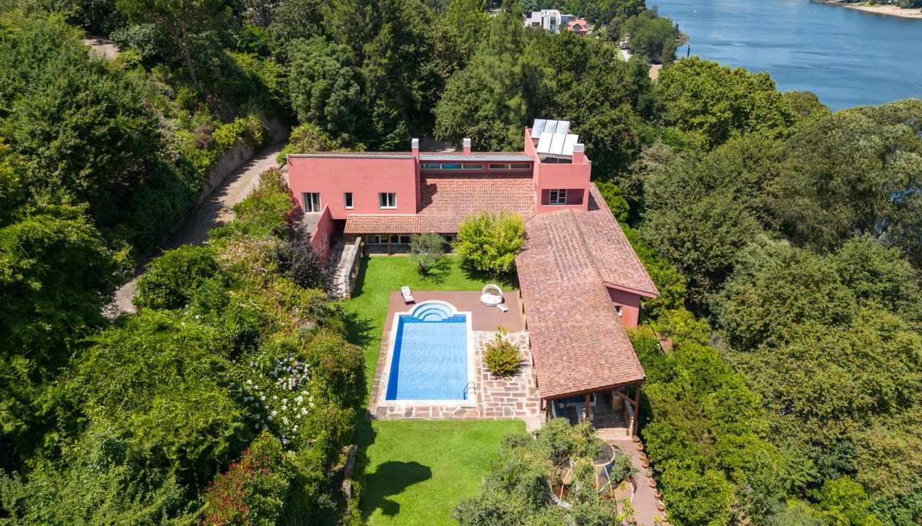 After crossing the access gates, we are enveloped by the woods that allow us to glimpse only the river, as far as the property boundary extends. The access path to the house confuses our senses. The feeling is that of being in some exotic paradise, and not at the gates of the cities of Gaia and Porto. it is more than a hectare of terraces that alternate between dense woods, mature gardens or fruit trees. The house surprises by its clean and straight lines, opening south to the extensive lawn w...