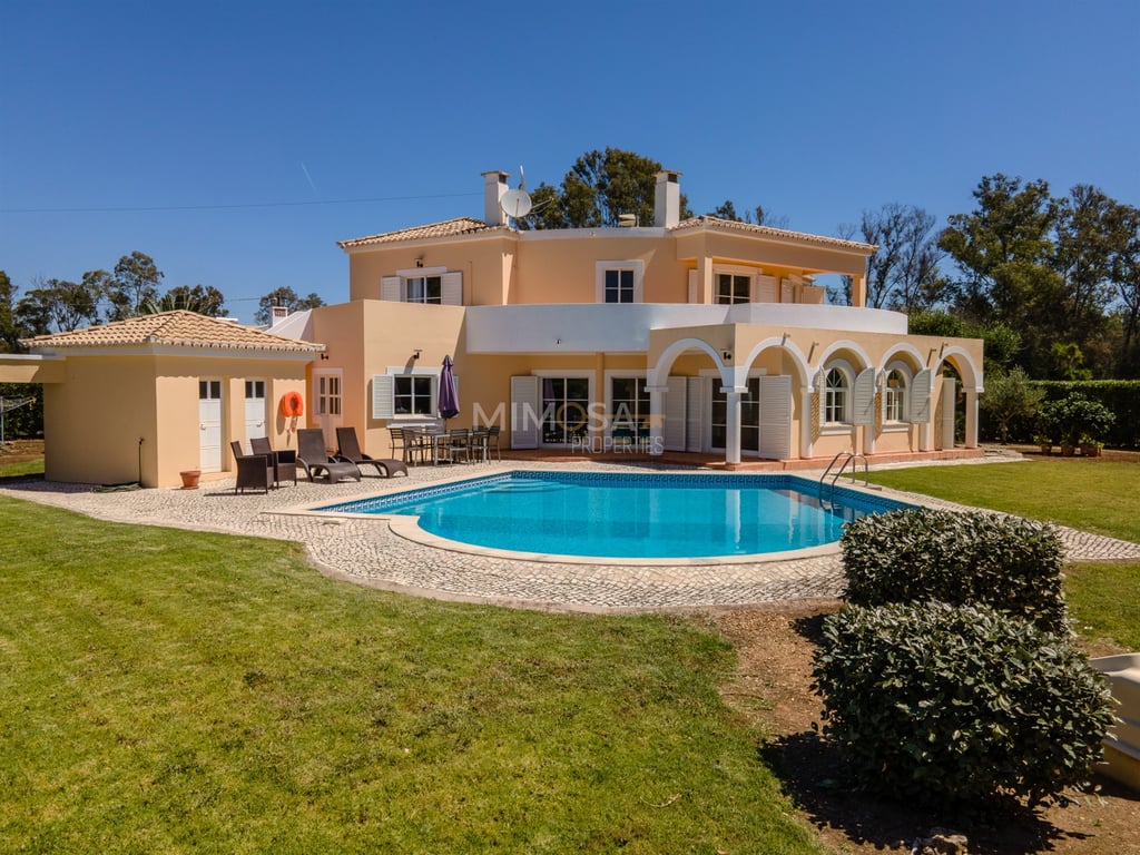 A charming 4-bedroom Portuguese-style villa with a swimming pool on a golf course.The property is south-facing and has good sun exposure, surrounded by a garden.The ground floor consists of an entrance hall, a fully equipped kitchen with laundry, a living area, a dining area with access to a terrace and a swimming pool, a bedroom, a guest bathroom, and a garage.The first floor consists of a master en-suite bedroom, an en-suite bedroom, a bedroom, and a bathroom. The two en-suite bedrooms have a ...