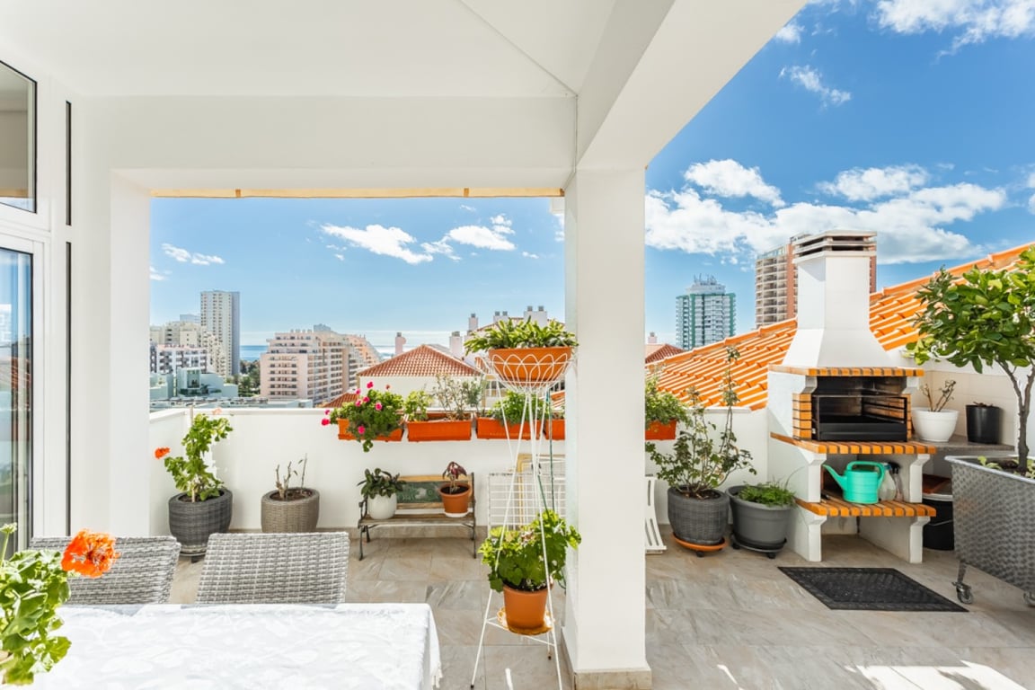 A recently refurbished4-bedroom penthouse with a modern and elegant design, it is located on the fourth floor of a private condominium with two elevators, in a quiet residential area on the coastal strip of the city of Portimão, the renowned Praia da Rocha, in the Algarve. The south-facing building offers extraordinary views of the sea and the entire coastline of the Praia da Rocha area, which is less than 600 meters away from the beach. The apartment, on the top floor, benefits from large ind...