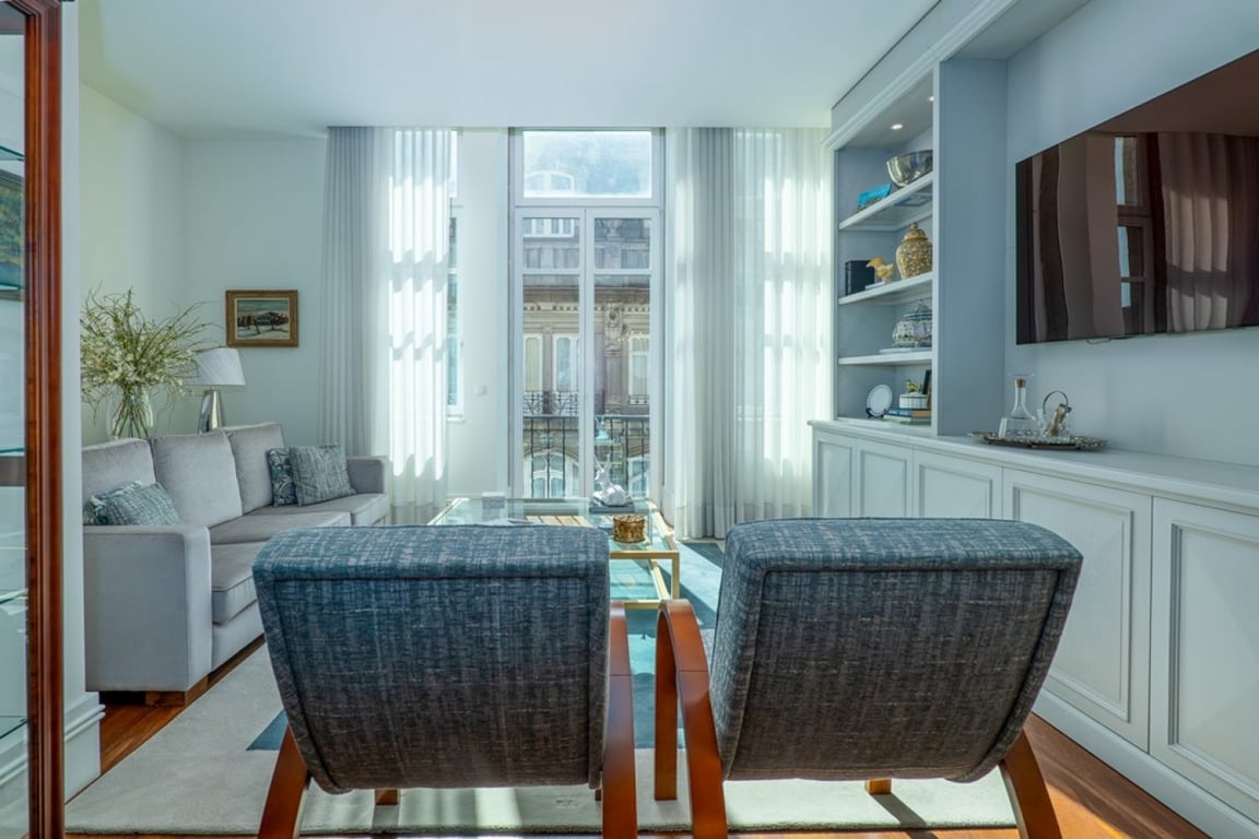 Contemporary apartment with three suites for sale in a prestigious and listed building of high historical value in downtown Porto. The interior is distinguished by its exceptional ceiling height, sober lines, noble materials and refined luxury finishes. The property offers a cosmopolitan lifestyle in a contemporary and sophisticated setting. Located in the historic centre of Porto, classified as a World Heritage Site by UNESCO since 1996, this flat is situated on the prestigious and centuries...